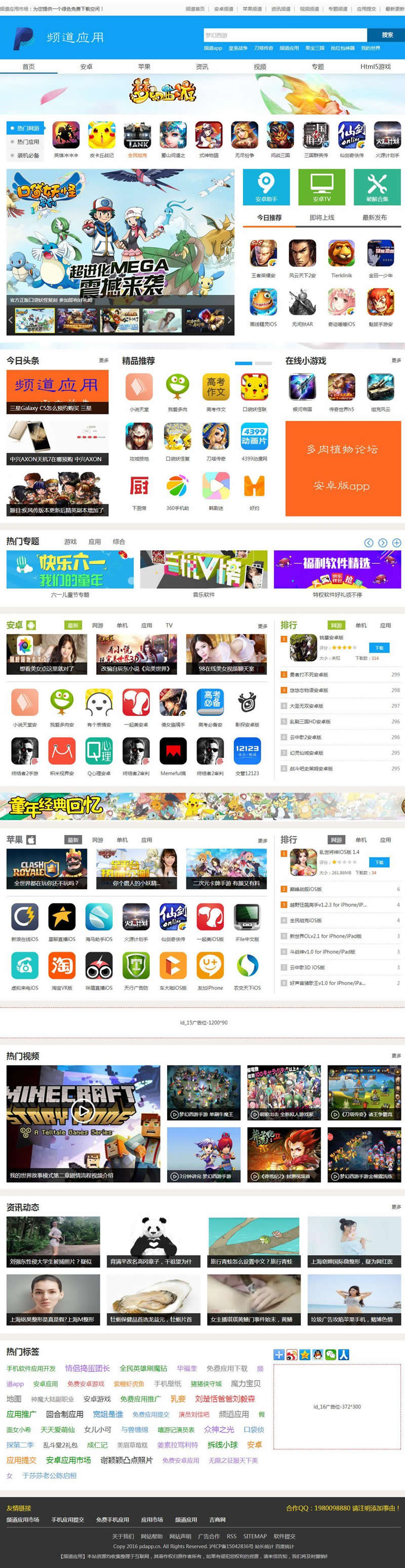 频道应用源码,频道手机应用信息,手机app游戏,支持PC与WAP访问,H5游戏无需要安装,直接手机可玩。内置广告位。H5手机网络游戏已经是必然的流行趋势,特别是微信玩起来更为方便,有眼光的站长一定懂得!下载APP功能,支持安卓、苹果应用APP下载,手机访问自动切换对应的手机风格,如,安卓手机访问会访问安卓手机版,下载安卓的应用,苹果则是苹果手机版。自动跳转苹果正版商城。