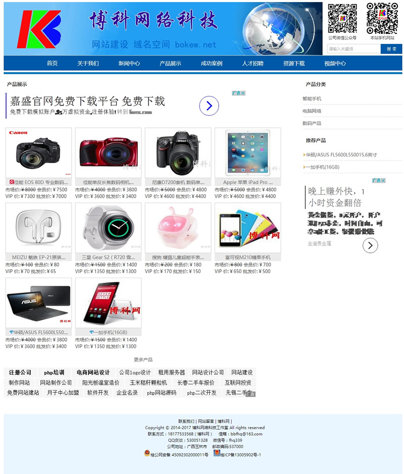 主要功能模块有企业信息、新闻动态、产品展示、案例展示,资源下载、人才招聘、视频中心、留言反馈等。后台可以全站生成静态 。采用模板化和标签调用,扩展性强,可任意修改网页布局、风格;SEO搜索优化,最大限度的优化页面打开速度并更利于搜索引擎的收录。后台有强大的广告管理功能。删除文章或产品时同时删除相关的图片和文件,也可一键删除没用的图片或文件,防止垃圾产生。程序通用性强,参数后台自定义,只要在后台设置好网站基本信息和分类栏目,不懂网页制作者也可轻松建站,管理网站更方便。博科企业网站管理系统简繁是企业、政府机关、学校等单位建站的最佳选择!