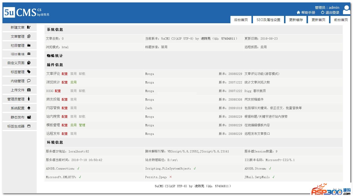 5uCMS CS(ASP UTF-8)版本采用ASP+ACCESS/MSSQL,使用前请在IIS环境下运行系统目录下 install.asp 文件进行安装。