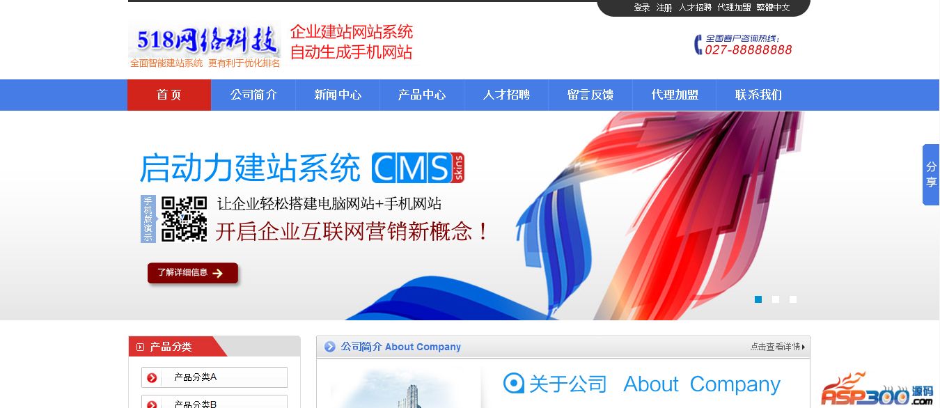 518网络科技CMS是一款款免费、简单、易用的企业网站建设系统,让企业轻松搭建电脑网站+手机网站,采用分割布局设计和存储分段技术,实现一个后台同步管理手机、平板、PC网站,使网站管理更方便。