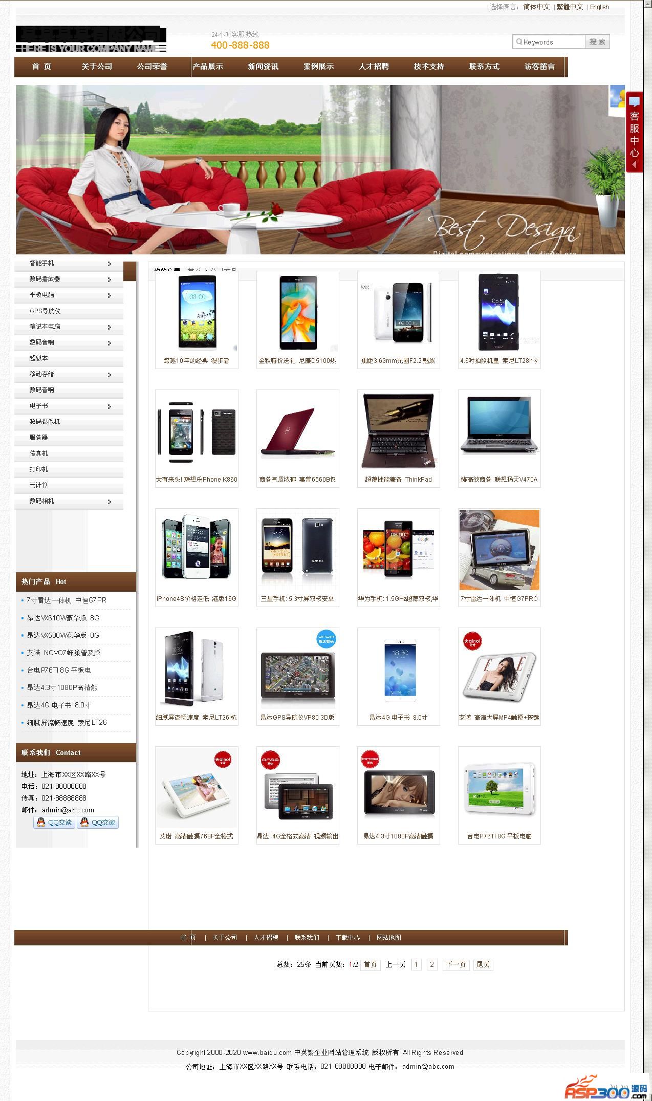 7.在线悬浮客服工具条 全站每个页面都有QQ和旺旺悬浮客服工具条,美观实用,方便您在线开展业务,直接和客户通过QQ或旺旺等进行网络沟通。