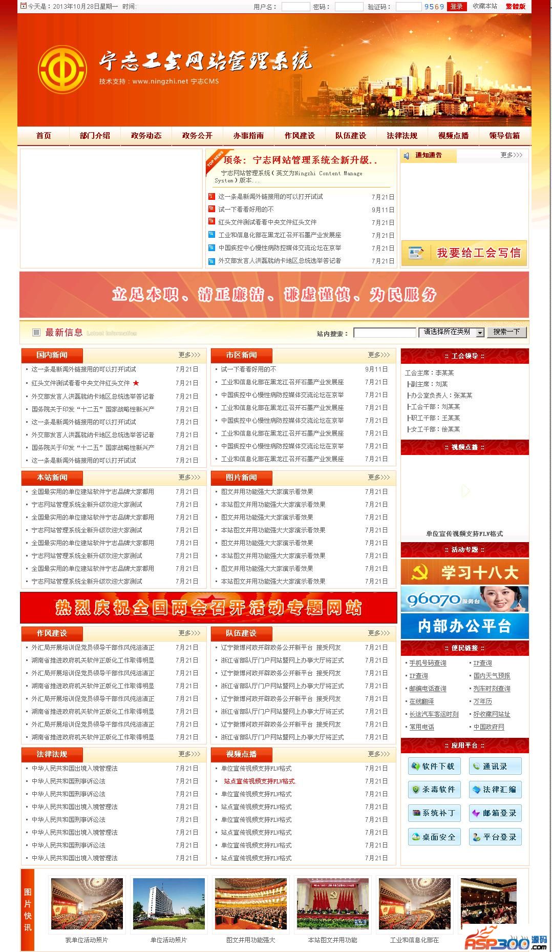 宁志工会网站管理系统一套专门为各种工会单位设计的网站管理系统。宁志网站管理系统是国内知名建站软件,它由技术人员开发好了的一种现成建站软件,主要为全国各事业单位、企业公司、自助建站提供方便。网站系统无复杂的安装设置要求,适合广大工作人员使用。特点:安全、稳定、美观、实用、易操作,可设管理员权限分配。