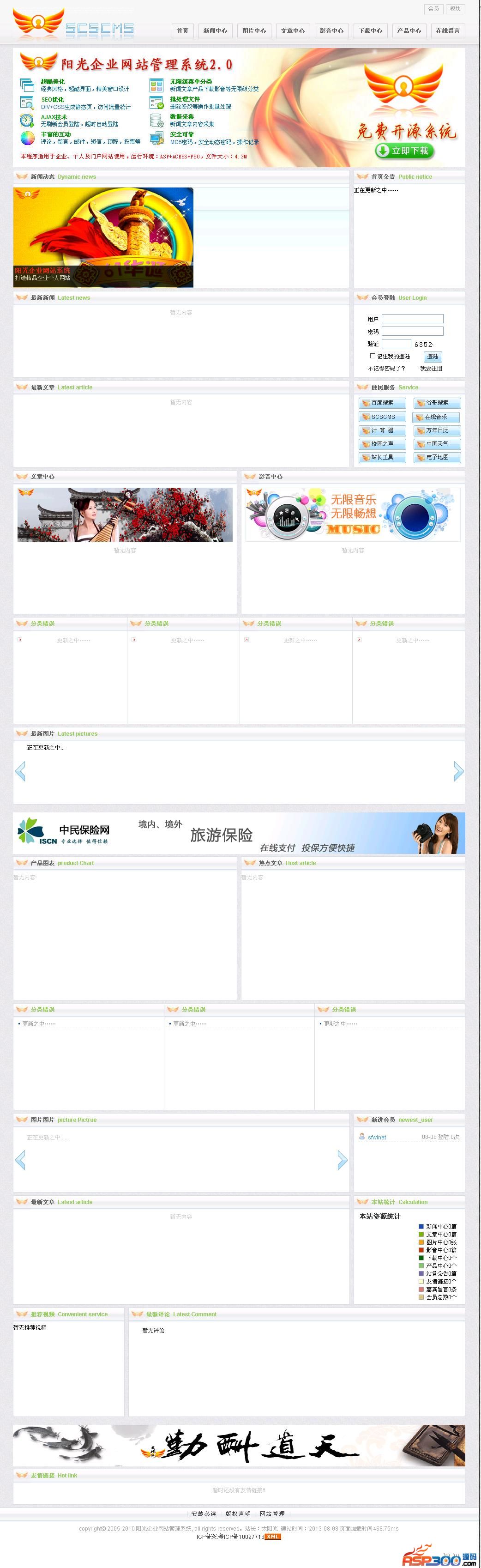 阳光企业网站管理系统(Sunshine Corporation Site),简称SCSCMS或SCS,其标识及程序,属太阳光工作室版权所有。