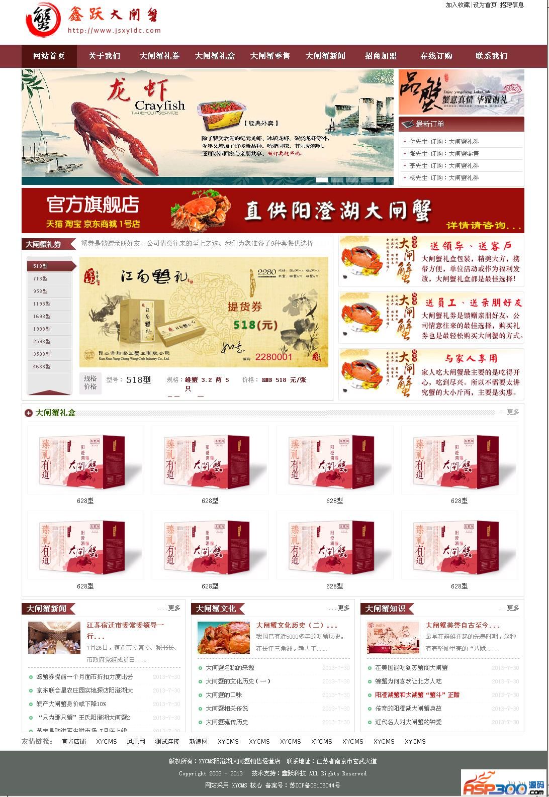 XYCMS大闸蟹销售经营店源码是以asp+access进行开发的企业网站源码。