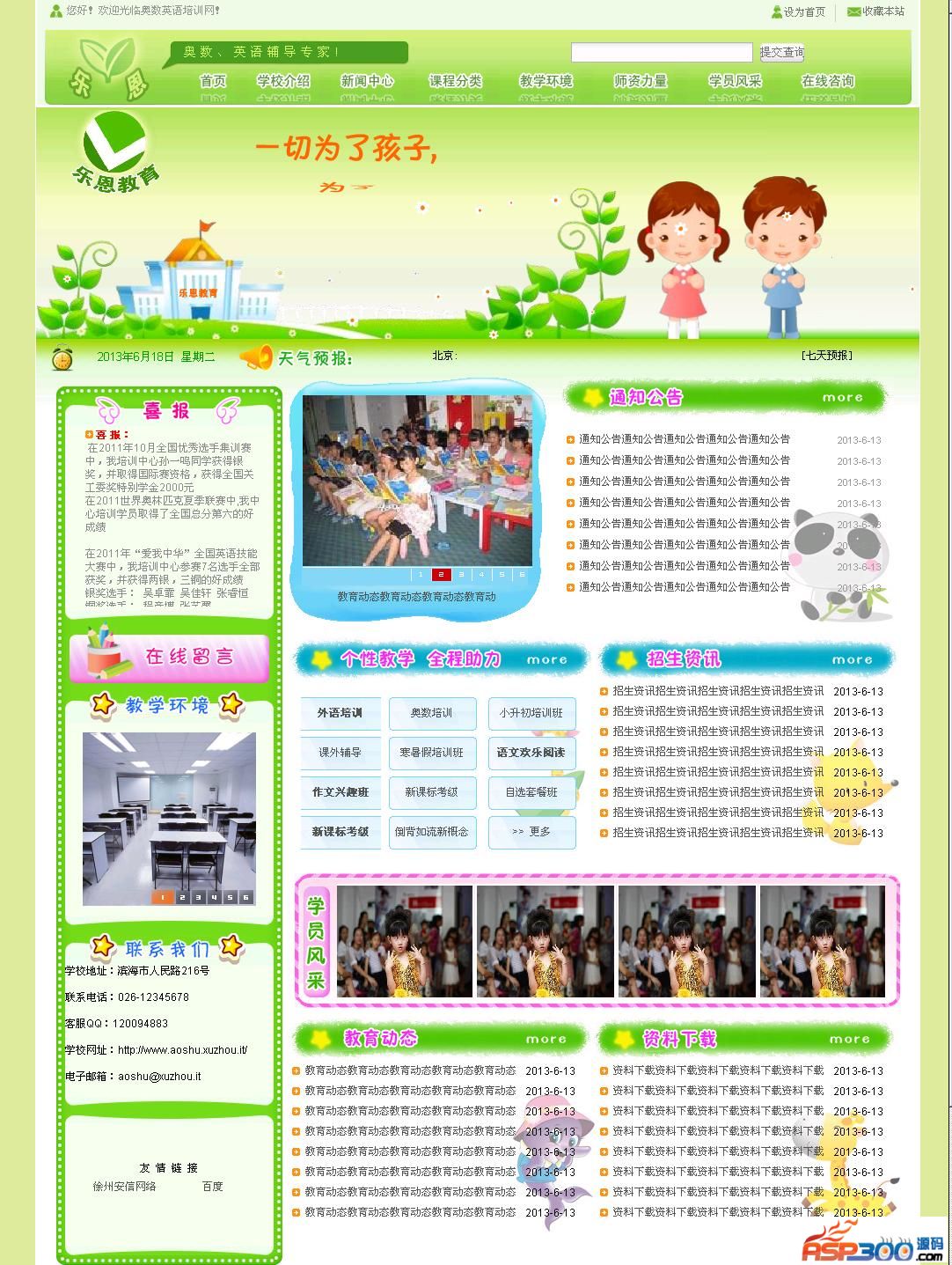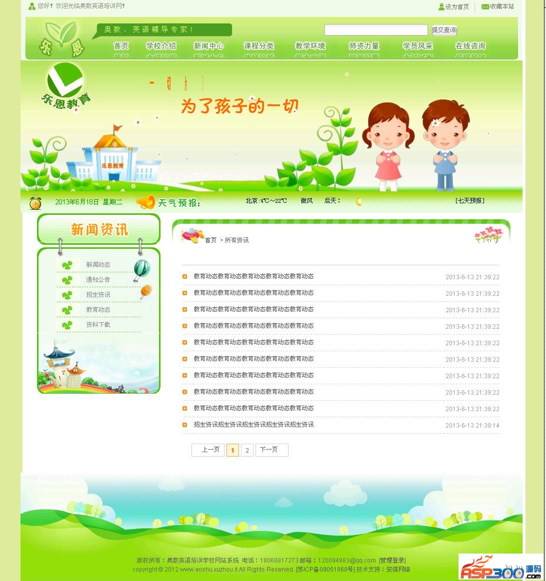 奥数英语培训学校网站系统是专为奥数英语培训学校网站管理系统,系统功能简单、实用、完全免费,网站采用ASP语言+ACCESS数据库开发,主要功能有机构简介、新闻动态、课程介绍、在线留言、在线报名、招聘信息等。