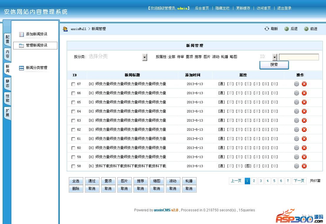 1.修复后台新闻发布系统中无限级分类管理时的小bug.