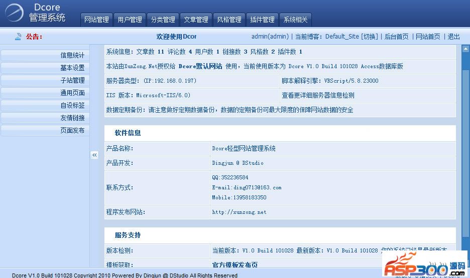 Dcore是一款轻便灵活、简单易用轻型CMS系统,非常适合用于建立个人博客或企业展示站点。