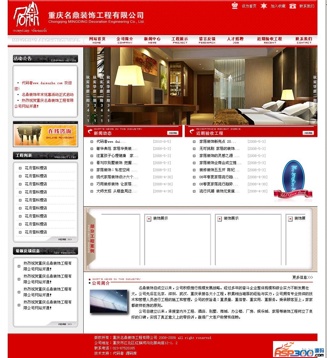 红色大气装饰公司网站源代码