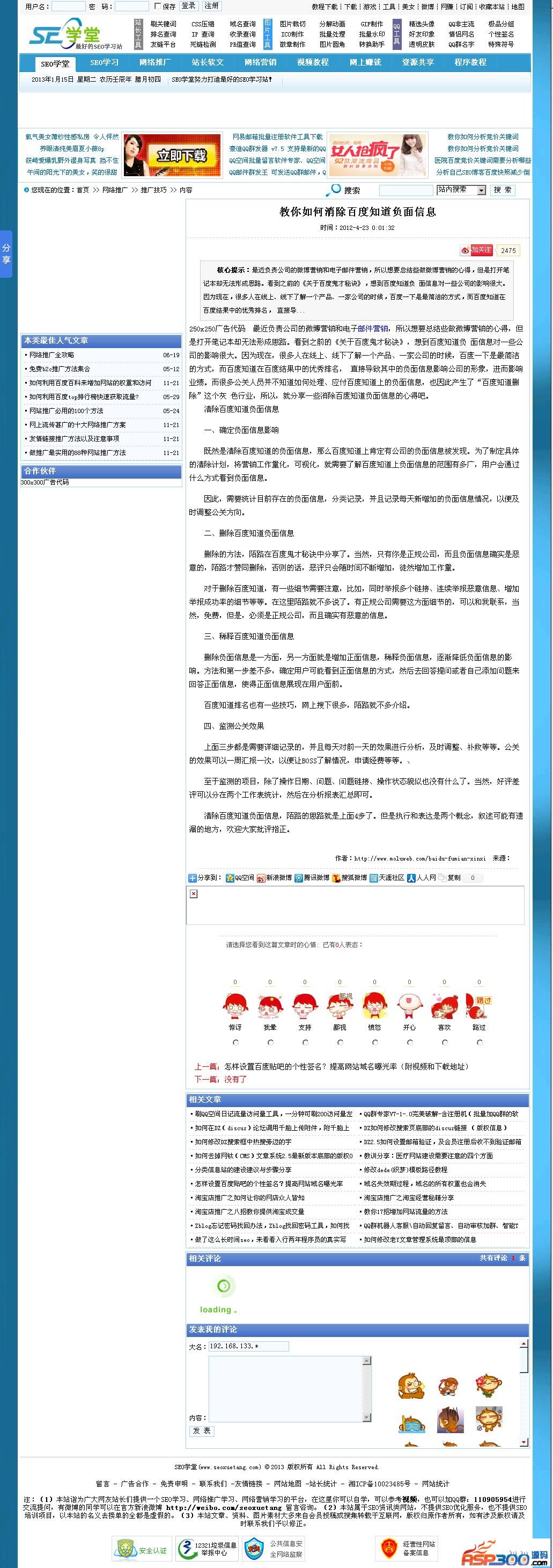 1、请下载安装使用本程序的站长朋友留着友情链接中的两个链接,一个是老Y的,网站程序版权归老Y所有;一个是我们的网站SEO学堂,网站从2010年5月10日就开始运营一直用着老Y的程序,文章都是我们手动更新的文章,在这里也倾注了不少的心血,希望大家能给在友情链接中留一个我们的链接。