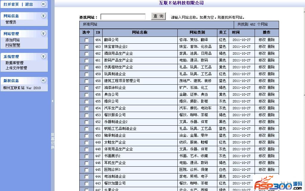 包含“管理员管理/添加网站/管理网站/数据库和上传文件管理”的完整功能。