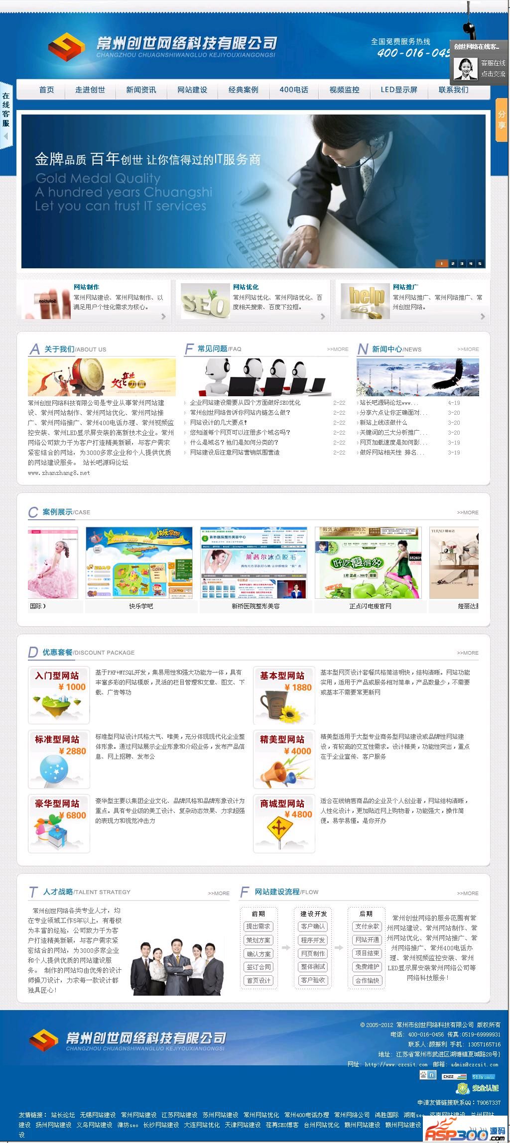 程序介绍:该网络科技公司网站源码采用ASP+ACCESS开发,界面以蓝色风格为主,前台设计漂亮、大方,该网站程序适合大部分IT类公司建站使用。