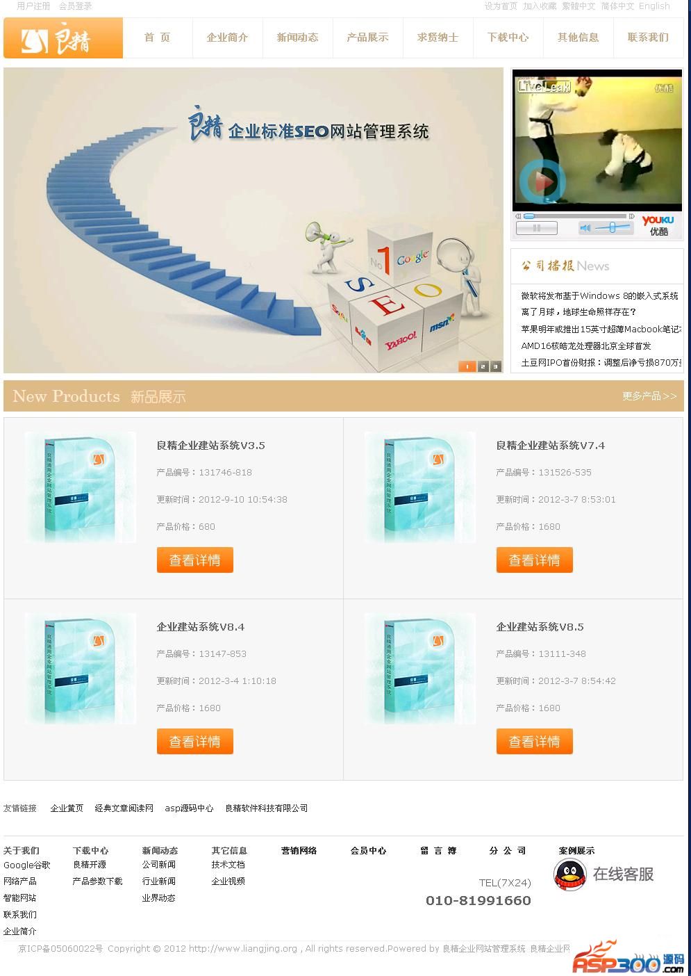 3. 产品展示:发布企业产品,按产品类别显示及搜索产品,并可多选产品直接下订单询盘,无限级分类,大大增加信息发布的灵活性。