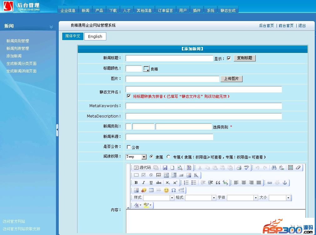 2. 新闻动态:发布企业新闻和业内资讯,从后台到前台真正实现无限级分类显示,并随意控制显示级数,大大增加信息发布的灵活性。