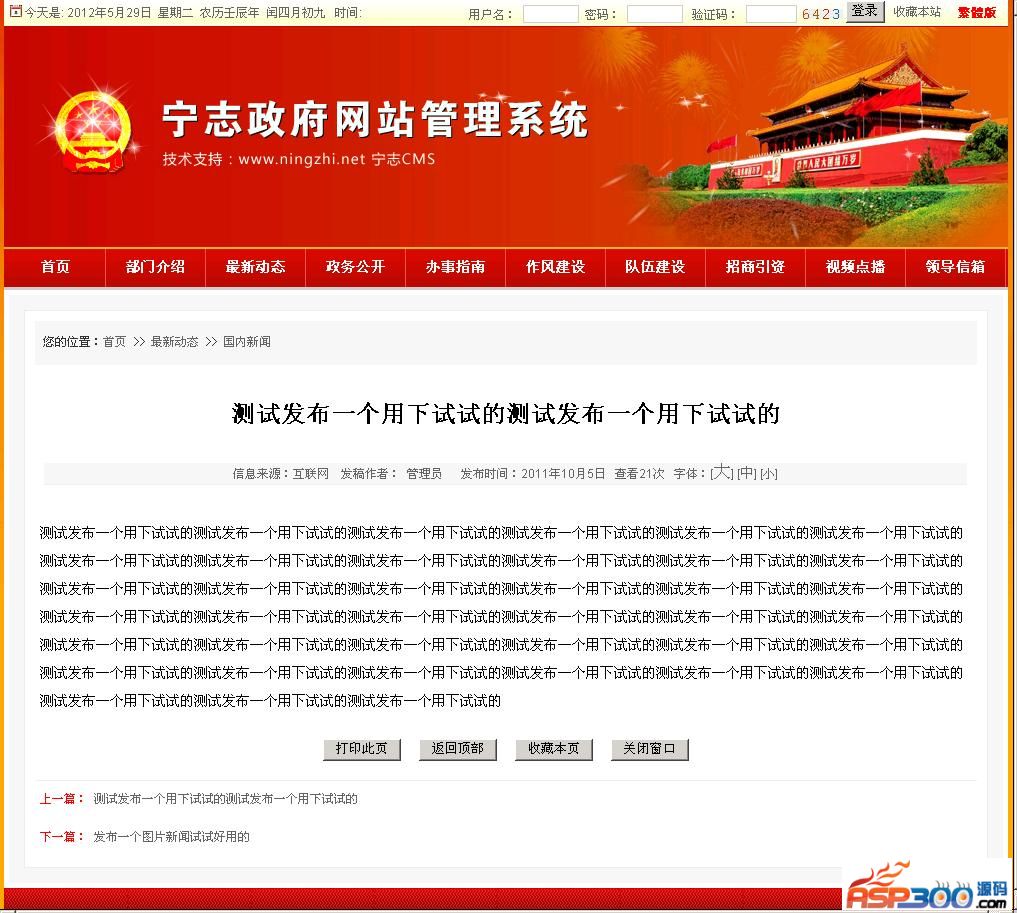 宁志网站管理系统是国内知名建站软件,它由技术人员开发好了的一种现成建站软件,主要为全国各地方自助建站提供方便。系统开发结构:程序语言:ASP+ACCESS/MSSQL运行环境:Windows Server 2003+ASP+ACCESS/MSSQL网站系统无复杂的安装设置要求,适合广大工作人员使用。特点:安全、稳定、美观、实用、易操作…可设管理员权限分配。