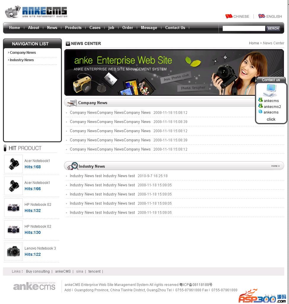 运行环境:Windows+IIS 程序语言:Asp后台:/admin 帐号密码admin admin 安科外贸网站v1.6新增功能简介:一、新增了发表留言和发布订单的验证码。二、新增产品、案例、新闻展示页的伪静态功能。三、后台新增了一键删除全部留言、订单功能。四、修复了后台的友情链接管理没有显示分页。五、修复了后台的应聘管理不能删除的问题。安科外贸网站v1.6程序简介:安科外贸网站管理系统中英文双语版V1.6是针对外贸中小企业而开发的具有简单易用、功能强大,性价比高、扩展性好,安全性高、稳定性好的系统,可以加快外贸企业网站开发的速度和减少开发的成本。让不同的用户在懂的少许html语言的基础上,就能够快速的构建一个风格个性化的而功能强大的中英文企业网站。安科外贸网站主要功能模块介绍:1. 企业信息:发布介绍企业的各类信息,如企业简介、组织机构、营销网络、企业荣誉、联系方式,并可随意增加新的栏目等。2. 新闻动态:发布企业新闻和业内资讯,可增加无限的一级栏目,中英文统一管理,更加方便。3. 产品展示:发布企业产品,产品可分二级分类,并可选择产品直接下订单询价。4. 成功案例:以图文的方式发成功案例,更好了展示了企业的优越性。5. 人力招聘:发布招聘信息,人才策略,浏览者可在线递交简历。