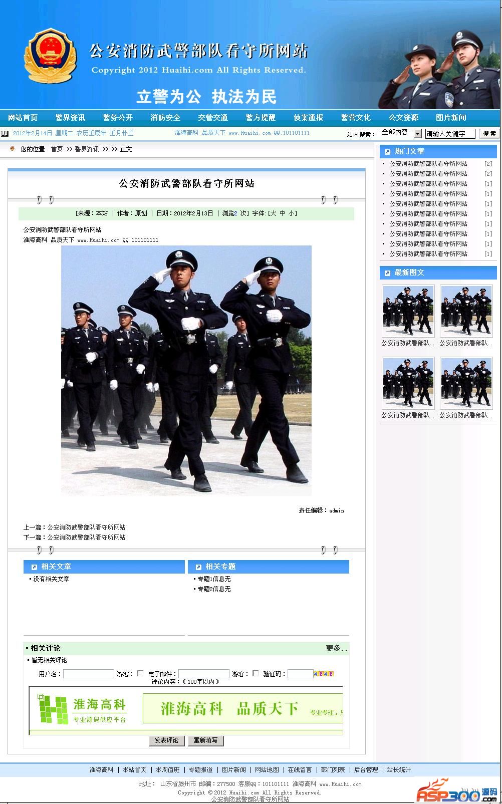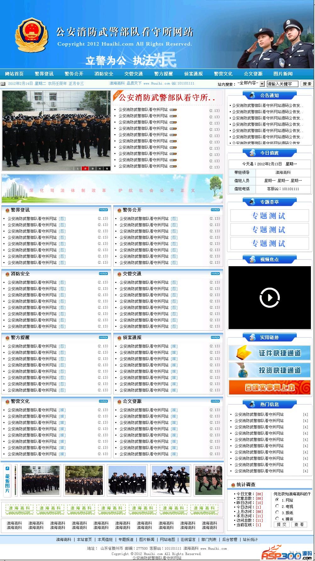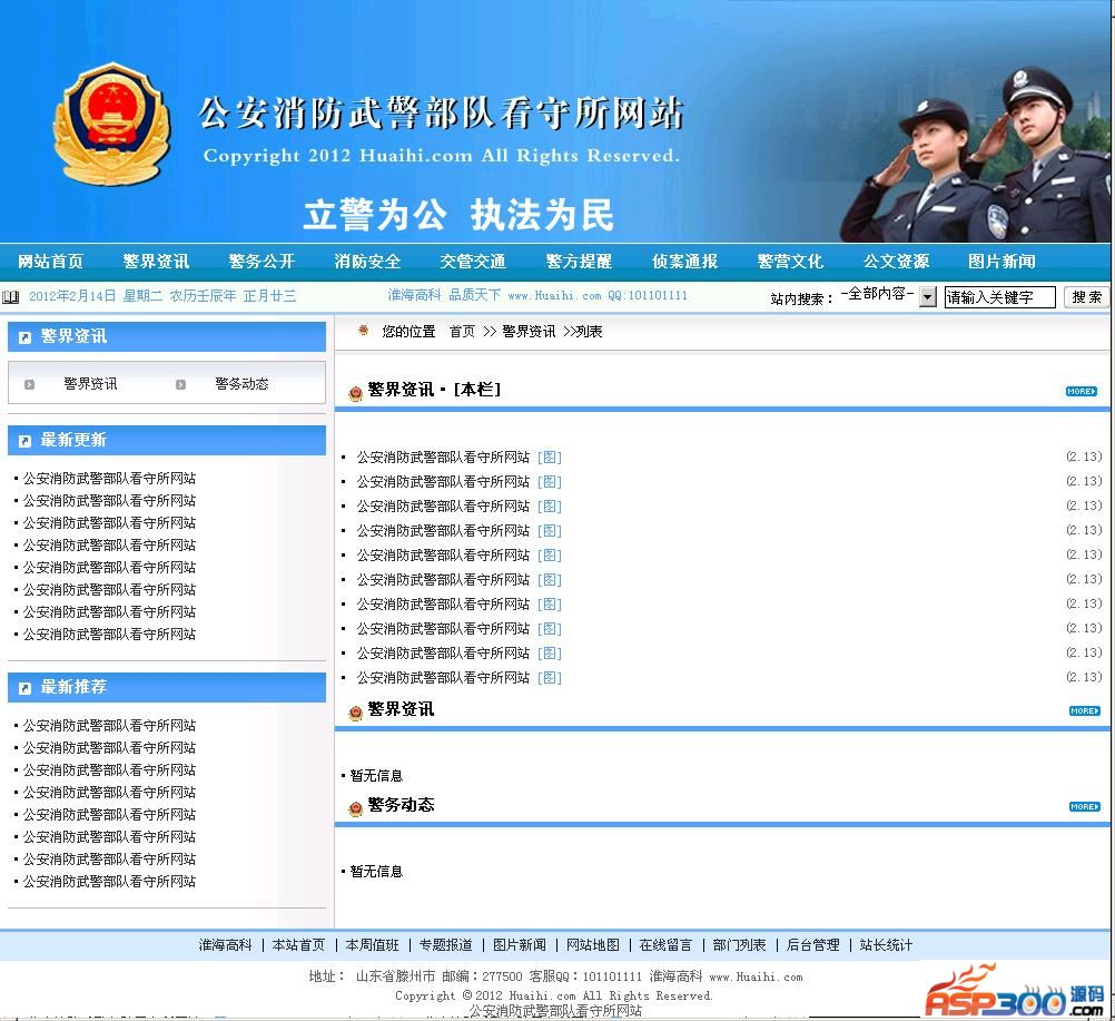政府迫切需要一款功能适用,安全可靠的政务网站管理系统,政府网站正逐渐面向成熟化;实用化发展,在互联网高速发展的今天,网络能做到的事情越来越多,这种24小时不间断的宣传方式备受各领域青睐,但是传统的建站方案过于复杂,成本相对较高,现在有了自助建站系统,您只需要会打字即可马上拥有一套自己的政府网站。公安消防武警部队看守所网站是基于ASP开发的一套政务教育门户网站管理系统,采用ACCESS数据库,使用简单快捷容易上手,仅需基础建站知识便可熟练操作。整站代码开源,无任何使用次数限制,无域名绑定限制。后台功能超强,风格大气,追求细节的完美性,优化了内核代码,升级了程序风格美工细节。经过历届版本的开发完善,现程序已几近完美。后台各项功能完整可用,无任何已知安全隐患。为政府网站提供优质、高效、便捷服务。程序后台会员管理合理完善,集成了政务类网站必备的各项功能,并且又创新增加了值班信息管理,后台控制值班人员名单。源码后台功能分权管理,指定后台会员分组权限,让后台管理分配更精确,各负其责。更多人性化的细节功能等待着您的发现。相信公安消防武警部队看守所网站会给你带来高品质的使用体验!