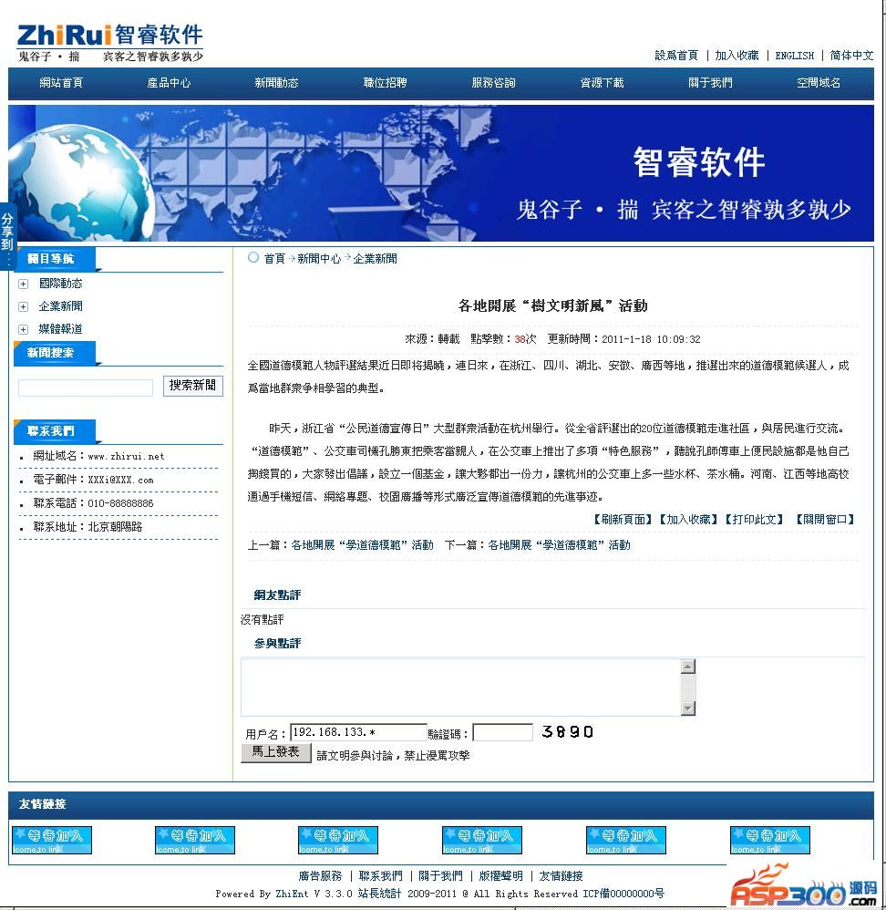 智睿企业网站管理系统具有强大的系统功能,支持中英繁三语体系,拥有文章/新闻、图片/产品、资源下载、人才招聘、订单系统、问答/留言、友情链接、广告系统、自定义模型、等众多丰富的功能模型。