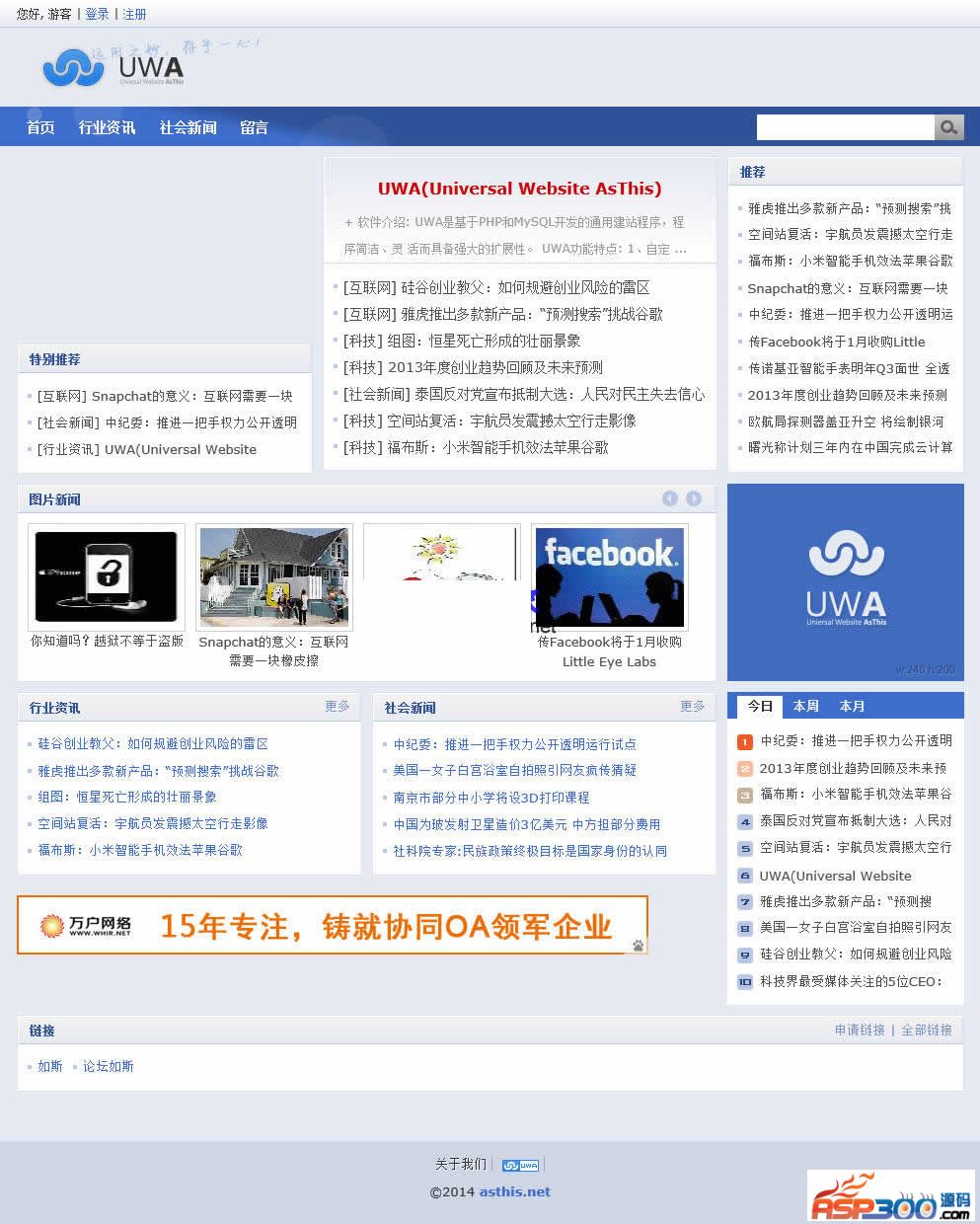 UWA是基于PHP和MySQL开发的通用建站系统,程序简洁、灵活而具备强大的扩展性。