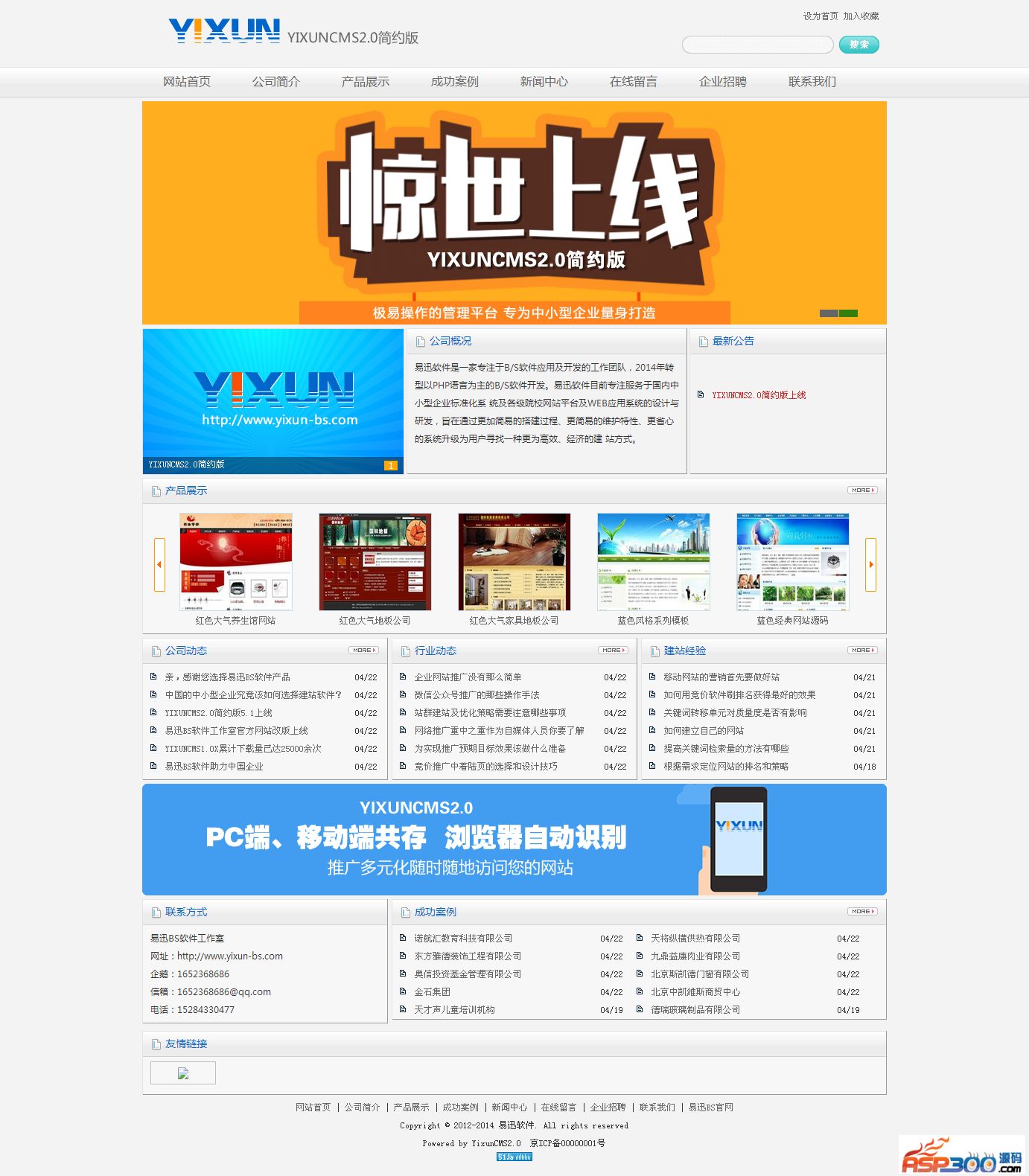 随着互联网发展的不断深化,企业网站无论在前端设计、用户体验、操作管控等方面都有了更高的需求。时尚版是易迅BS软件工作室在2015年7月向广大站长朋友发布的又一套企业(展示类)建站系统。时尚版在参考了目前众多前端风格设计基础上,秉承简约、前沿、时尚、大气的设计理念,化繁为简,为企业提供更加专业化的前端设计。