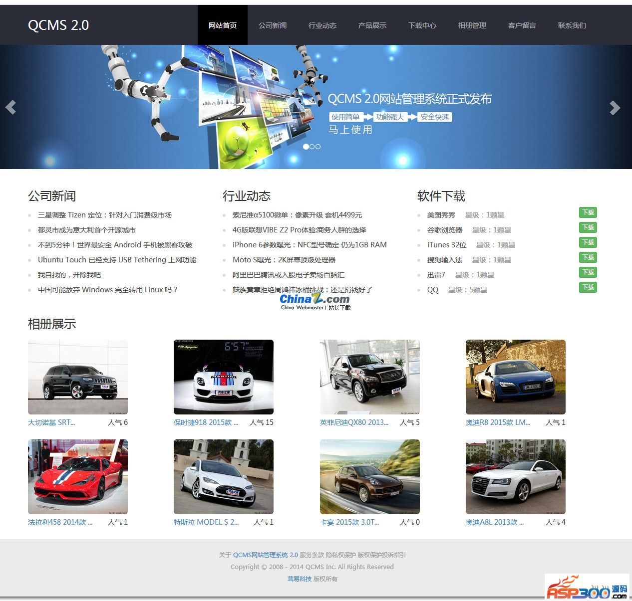 QCMS 网站管理系统 是通过MVC架构开发的一套PHP轻量级系统,它免费,开源,小巧,易用,功能强大. 可以自定义模块, 容易二次开发, 可以称得上是万能CMS系统, 可用于企业站,文章站,图片站,下载站,你只要能想得到,就能做的到.QCMS 网站管理系统 功能介绍:1. 核心设置 后台可以设置网站标题,网站简介,统计, 伪静态, 时区,语言, 所使用的风格,等等;2. 多语功能 通过语言包和模板可以实现多语版.3. 会员模块 支持会员注册,登录, 会员可以发表文章,管理文章,会员可以充值, 通过支付插件可以实现在线购物.建立商城功能.4. 栏目管理 可以创建无限级分类的栏目,以及各栏目功能设置,新建栏目可以选择万能模块创建的各种模块,实现各种需求; 每个栏目可以指定不同的模板.5. 模板及标签 模板全面标签化,懂得html就可以很快做出一套QCMS模板. 模板可在后台管理并编辑,无需FTP上传.6. 后台管理组 可以添加后台管理员及网站编辑等,并可以设置各级管理员的操作权限;7. 万能自定义模块 此功能是本系统的一个亮点,系统自带一个文章模块, 除了这个模块外,用户可以通过建立模块和自定义字段,建立任何你所需要的模块, 比如下载, 商城, 视频等等.已实现了字段类型有:文本、下拉菜单、单选、复选、图片、下载、单图,等. 使用网站功能满足客户各种需求;8. 万能自定义表单功能 通过增加自定义字段自动生成各种表单, 将此代码粘贴到前台模板中, 可以实现在线留言,在线报名,在线调查,等栏目.9. 数据库备份还原功能 通过此功能可以定期进行网站数据备份还原,保证网站的数据不受损失。10. 自定义页面 可通过后台添加自定义标签,页面,js,xml11. 插件平台 插件机制和平台已创建好,官方会定期发布一些插件供大家下载.安装. 通过插件可以实现更多个性化的功能. 比如友情链接,支付宝插件, 地图接口,12. 高效缓存功能 开启缓存后,打开的网站速度如同静态页一样流畅.
