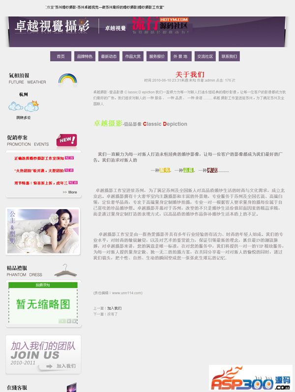 某婚纱摄影工作室源码,紫色风格,仅带部分图片数据[DEDE内核]