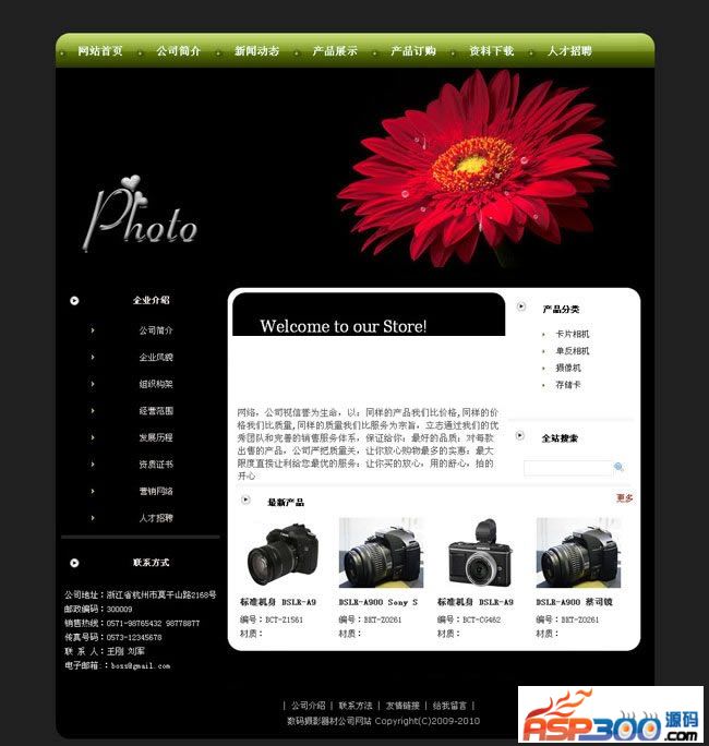 数码摄影器材公司网站源码包含模块:新闻文章,企业动态,产品展示,人才招聘,产品订购,资料下载等。