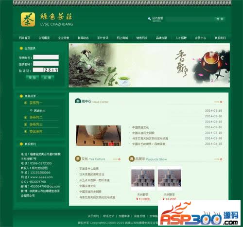 PHPWEB绿色大气茶叶网站源码下载,源码为PHPWEB 2.05 的商业版。本来是为某人制作的网站,在制作之前,问及什么要求。说是没要求,然后按照某某网站来做即可。(即这套程序的1.X的版本)。我再三确认是否有别的要求。都说没有,然后在发给他看的时候又说不满意,完全和那边的站点一样。哎哟我的妈,当初要求就这样,我不按照这个来做怎么做?现在免费发布出来给大家吧!
