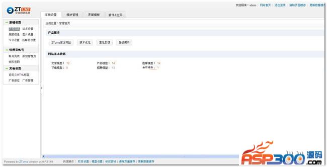 ztcms新版支持7种模型:文章模型、产品模型、图库模型、下载模型、招聘模型、单页模型和外部模型,
