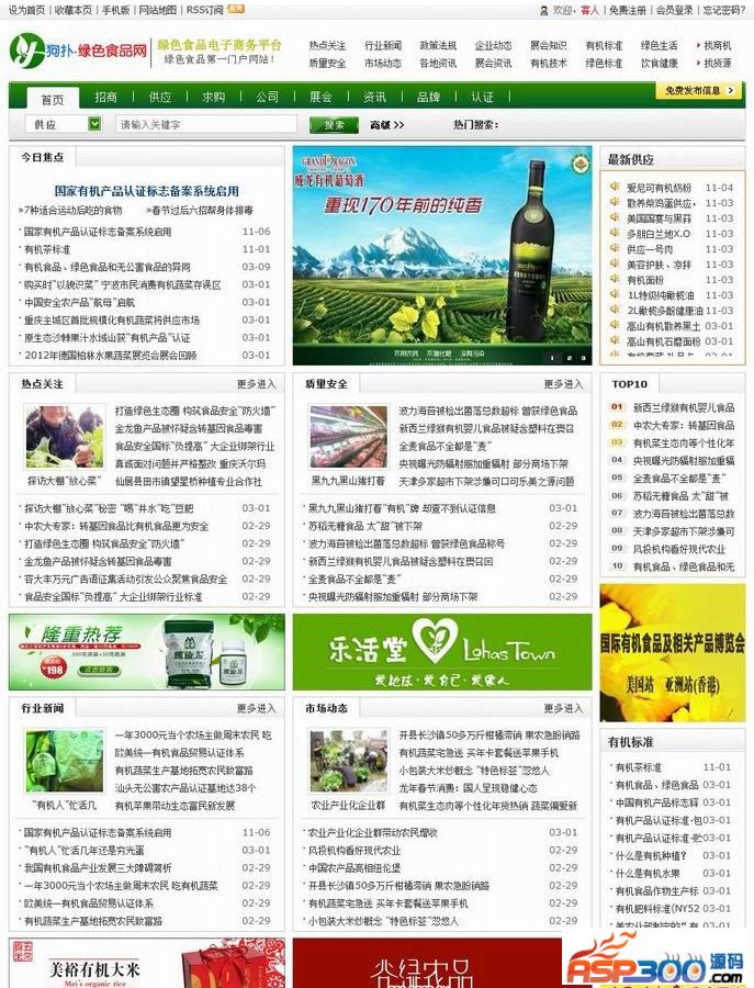 其他说明:绿色食品B2B行业门户源码,模板绿色清新,主要栏目有:招商、供应、求购、公司、展会、资讯、品牌等,十分适合做食品、农产品等相关行业B2B站点使用。