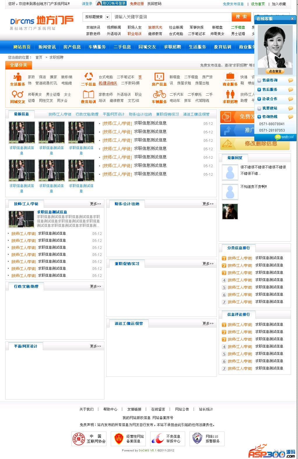详细介绍:内核采用DirCMS内容管理系统2011Sp3正式版本,功能强大,稳定安全,内置:新闻、分类、黄页店铺、团购秒杀、友情链接、广告管理等多种功能模块,并支持在线一键升级。更新日期:2012年05月12日更新内容:[增加] 全新的安装UI界面;[增加] 支持第二代站群系统;[增加] 栏目可指定栏目ID catid进行调用;[增加] 假如未安装member模块,ucenter设置不显示;[增加] 栏目支持外链的功能;[增加] 增加更新内容时自动加内链的功能;[增加] 默认增加自定义表单模块;[增加] 增加游客密码删除功能;[增加] 增加信息有效期功能;[增加] 增加模板会员读取函数 memberinfo($userid);[增加] 增加QQ登陆功能[授权版];[增加] 增加会员注册地区判断功能[授权版];[增加] 增加会员登陆地区判断功能[授权版];[增加] 增加游客发帖地区判断功能[授权版];[优化] 搜索功能,避免某些结果搜索不到;[优化] 后台栏目展现体验;[优化] 优化评论功能;[优化] 优化会员自助置顶功能;[修复] 一处后台管理员权限操作Bug;[修复] 一处针对后续模块拓展的重要升级;[修复] 后台更改模板方案无效或者需要切换两次才有效的Bug;[修复] 添加点卡类型时点击取消出现错误页面的Bug;[修复] 开启远程附件时,FTP填写错误会造成网站无法访问的Bug;[修复] 开启远程附件时浏览服务器不显示图片列表的Bug;[修复] 搜索模块一处空白字符搜索BUG;[修复] 一字段管理BUG;[修复] 后台LOGO在IE6下显示不透明的BUG;[修复] 后台在IE6下的兼容显示BUG;[修复] 会员等级到期不自动掉级的BUG;[修复] 编辑字段不显示的BUG;[修复] 模板理页码显示不完整的BUG;[修复] 会员中心一处头像修改显示错误的BUG;[修复] RSS中&字符无法直接显示的BUG;[修复] IE8下绩效考核K线报表无法正常显示的BUG。