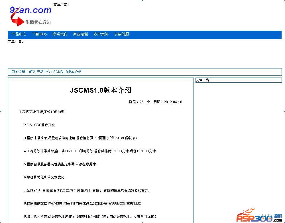 3.程序非常简单,尽量追求访问速度.前台连首页3个页面.(开发本CMS的初衷)