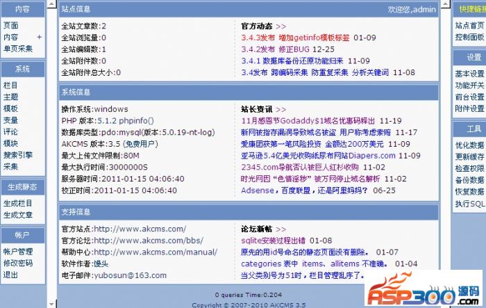 PHP各种版本(4.0*-5.*)AKCMS全部工作正常