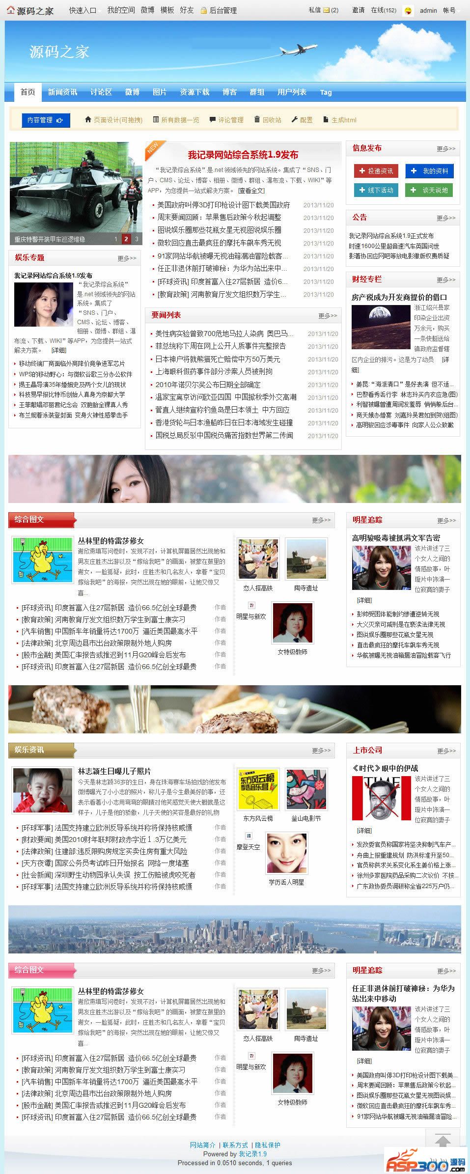 •可发布文章、视频(Flash)、图片、附件、投票、幻灯等,同时可以无限扩展;