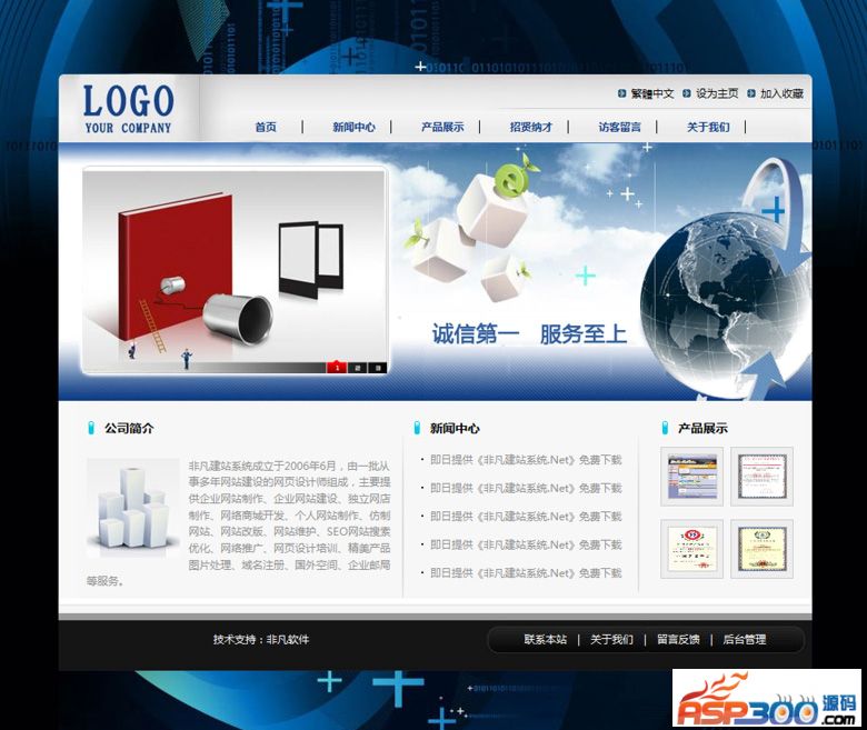 - 可后台更换FLASH轮显广告图片,可指定图片链接。