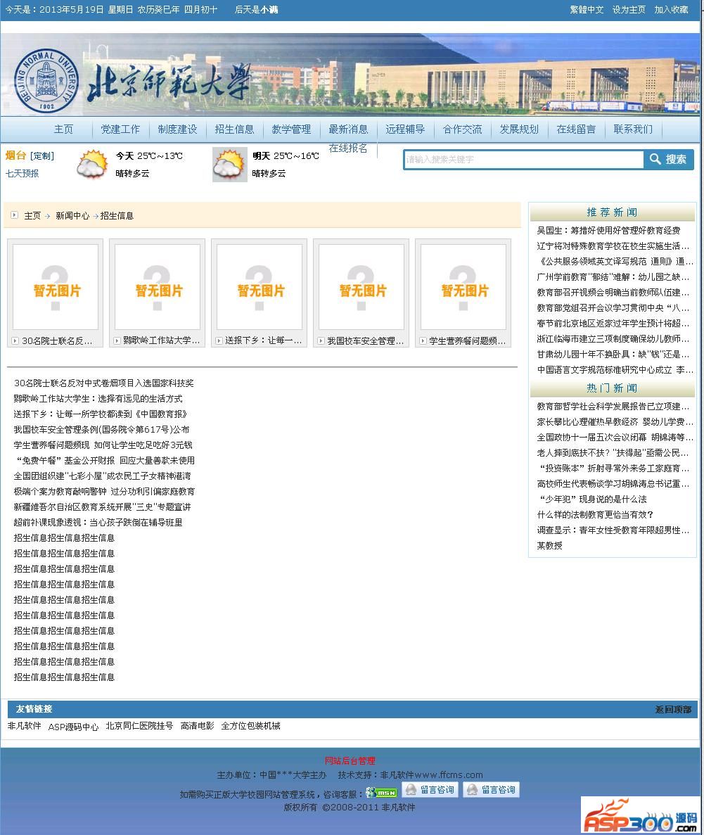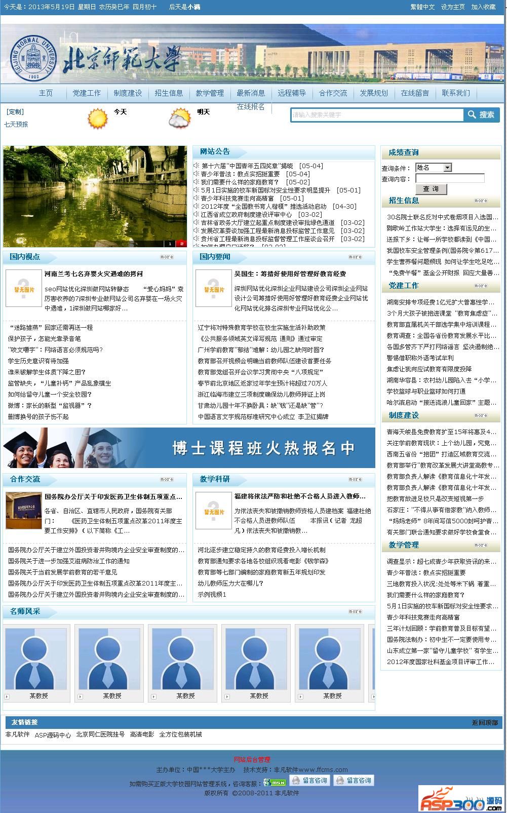使用于智能学校,大学,教育部门的网站模板。全站内容全面,设计合理,学校的校标和名字映衬在以校园为背景的图片上,立意新颖。站内细节化的设计还体现在各地的天气预报和成绩查询,大大的方便了师生和家长的出行,和通过其他渠道成绩查询的繁琐步骤。名师风采和发展规划方便学生和家长对学校近一步的了解。远程辅导可以让师生足不出户解决学习上困惑,招生信息和在线报名一线的设计是对考生最贴心化的设计,真正做到人性化建站。