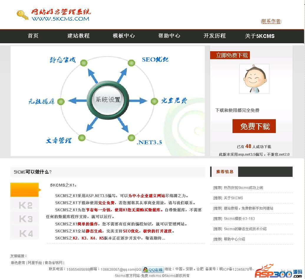 5KCMS之K1采用ASP.NET3.5编写,可以为中小企业建立网站尽绵薄之力。