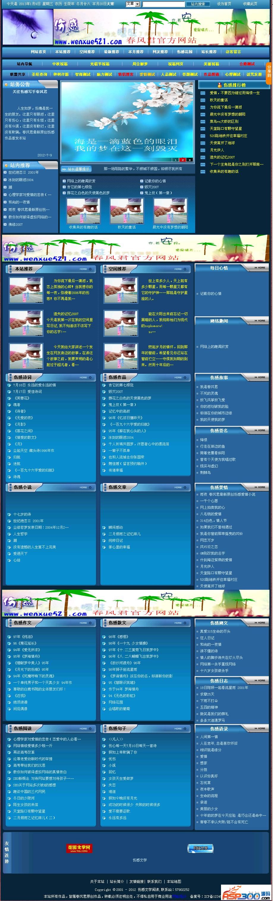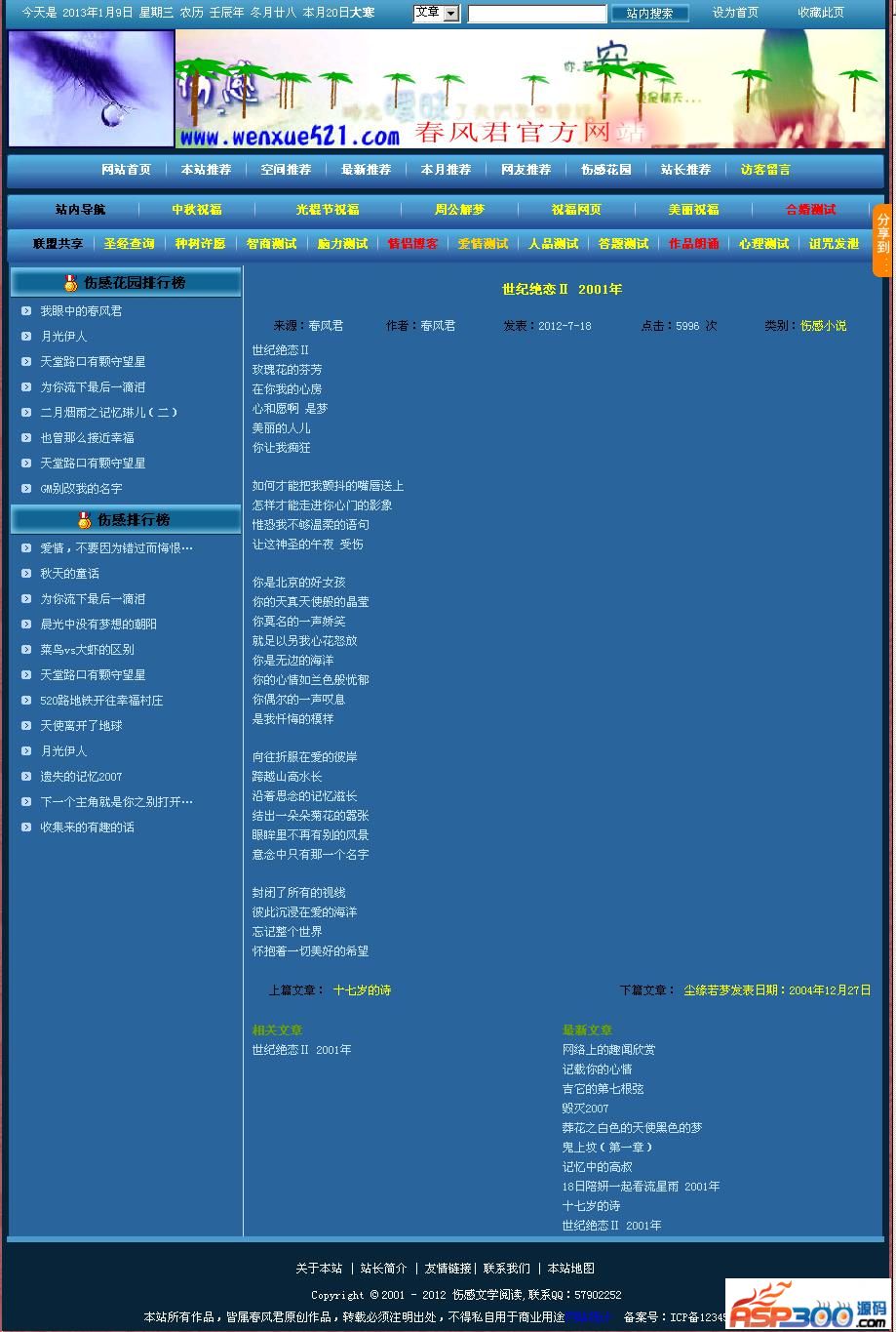 伤感文学文章管理系统为免费源码,主要针对个人网站量身制作,满足了对ASP陌生的朋友建站要求,后台管理方便,功能强大,主要针对搜索引擎进行了优化。