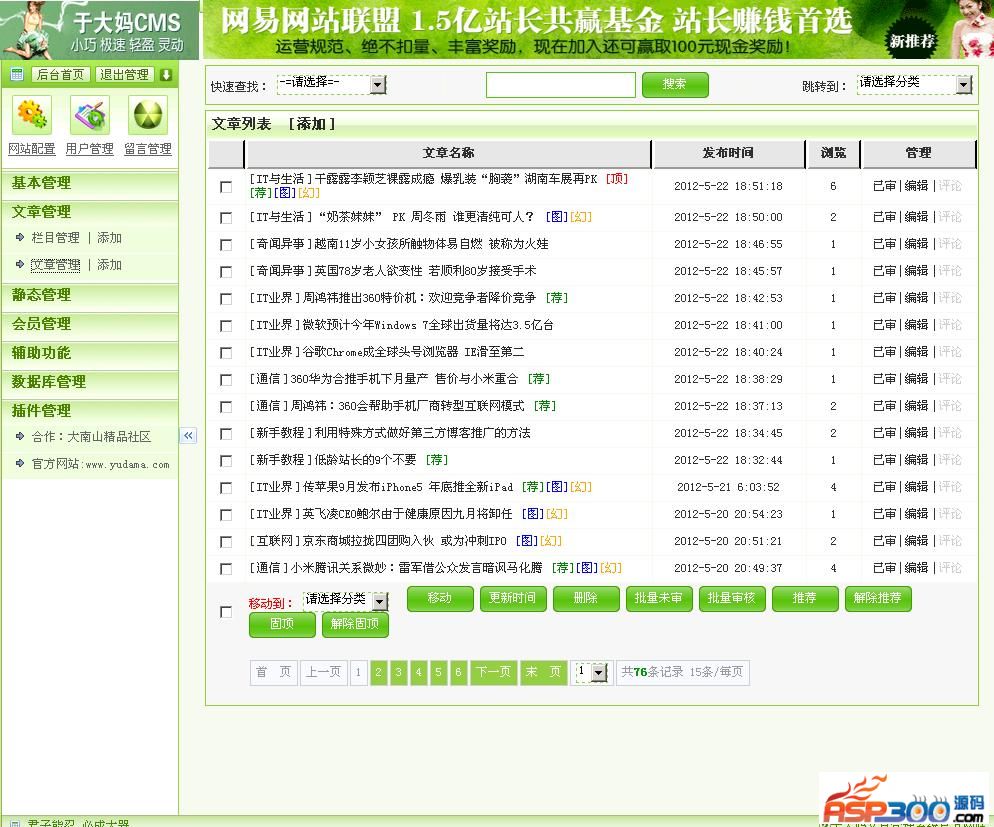 于大妈文章管理系统基于ASP+Access的技术架构,不但可以适用于广泛的新闻发布型网站,还适用于淘宝客网站,功能只会往功能通用、操作简单的方向发展,让不懂代码但又想建立自己网站的朋友,使用于大妈文章管理系统,通过后台简单的配置,就能拥有一个个性化的自己的网站。