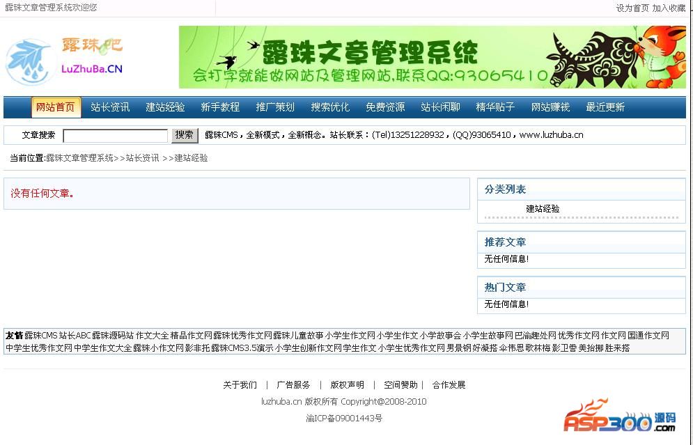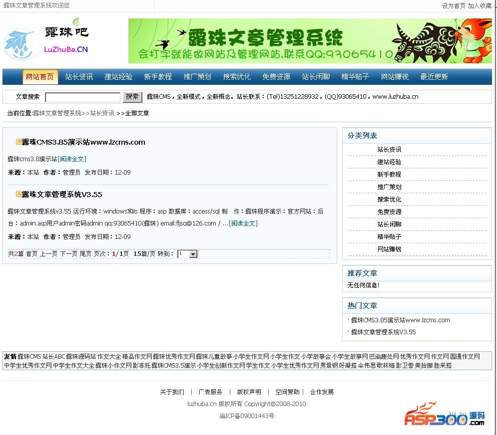 露珠文章管理系统,麻雀虽小,五脏俱全!致力于打造互联网上程序最小功能齐全的网站源码,只要你会打字就会做网站和管理网站。