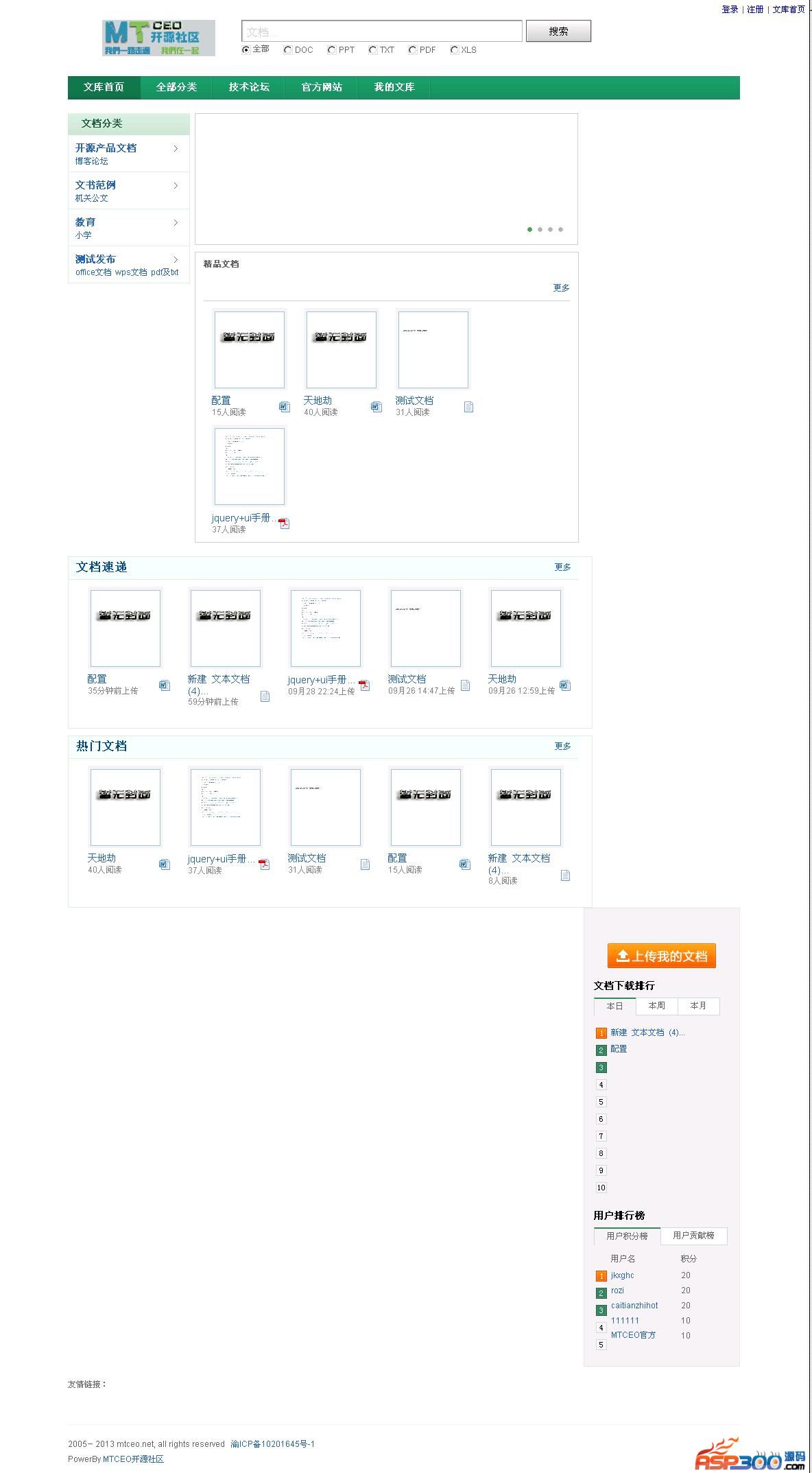 MTCEO文库系统免费开源,采用php+mysql,由thinkphp搭建底层,百度文库模板风格为基础风格。