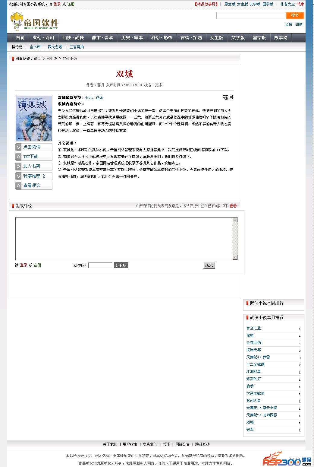EmpireBook 3.15是一款功能强大、安全、稳定的,适合原创小说站、采集站的小说管理系统。
