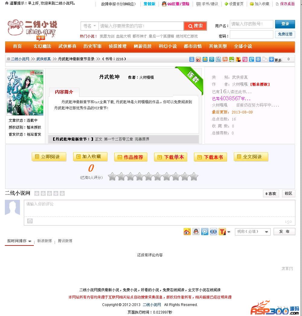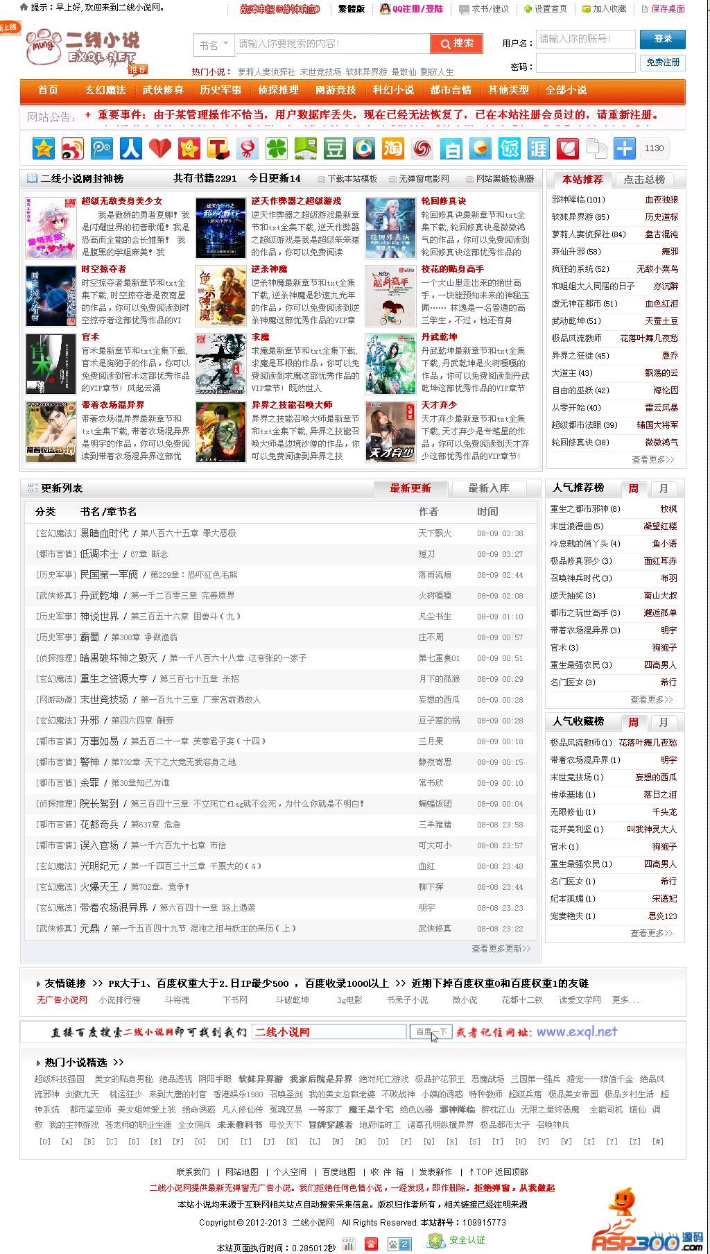 适用范围: 小说网源码,二线小说源码,二线小说网源码