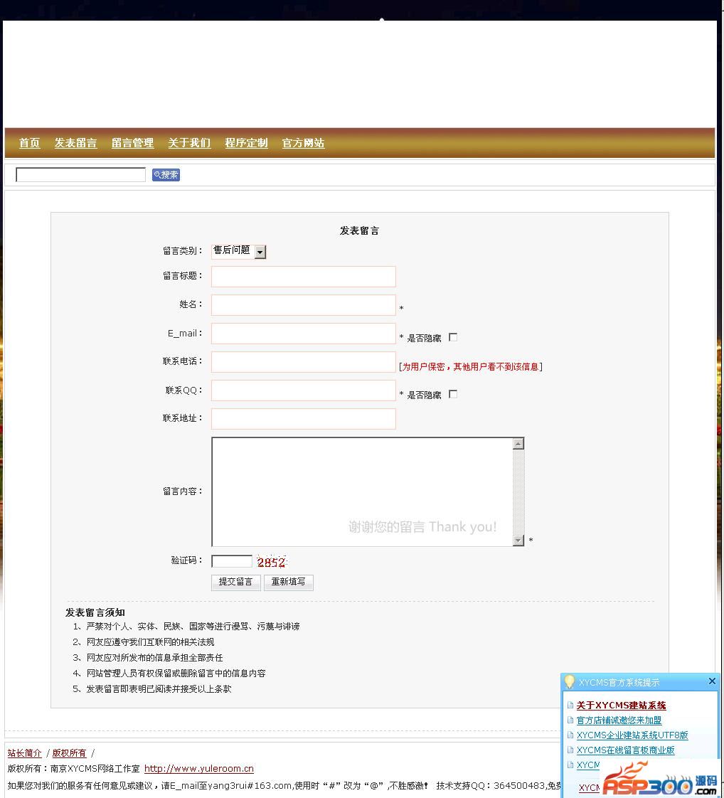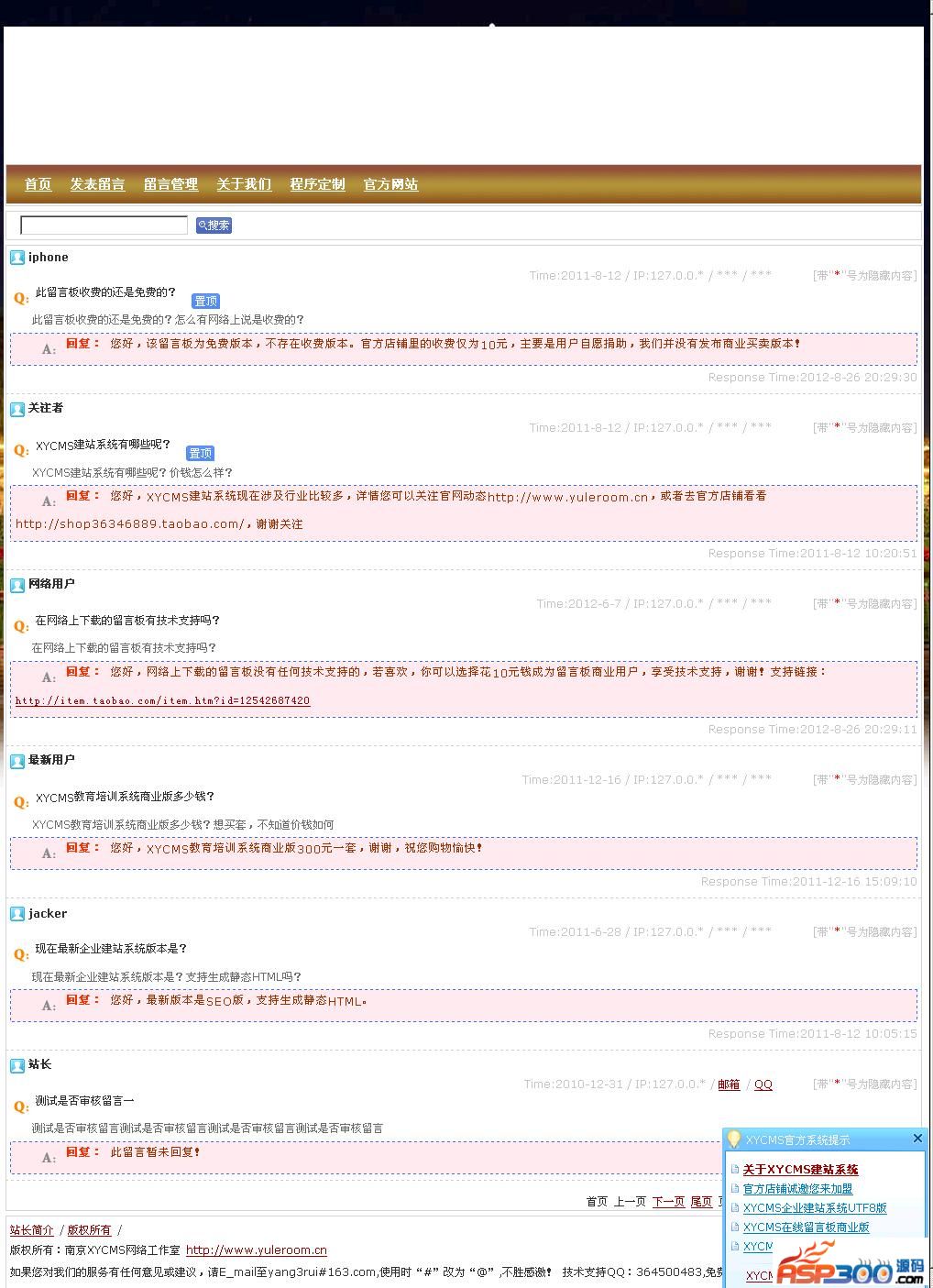 此版本完全免费,没有任何功能限制,不提供技术支持。不要相信任何网络上关于XYCMS留言板收费版本,唯一收取20元的是官方店铺里象征性的用户捐款对我们的支持!谨防上当受骗!