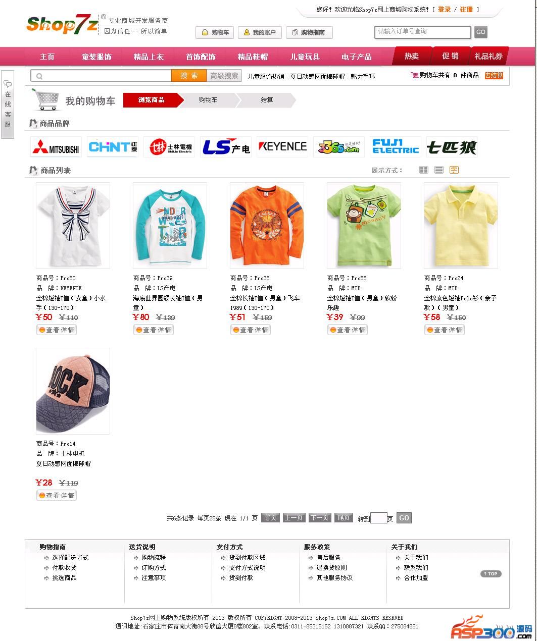 Shop7z网上购物系统是一套完全拥有自主知识产权的ASP购物系统,集大气超美观页面+商品组合套餐+限时抢购秒杀+图片批量上传+淘宝数据包导入+弹出式分类菜单+不同规格不同价格+物流跟踪打印查询+会员积分及优惠券+物流单打印+邮件群发+图片在线管理+销售统计报表+五种价格体系+礼品礼券等等强大功能于一体,是企业或个人网上开店的最佳选择。