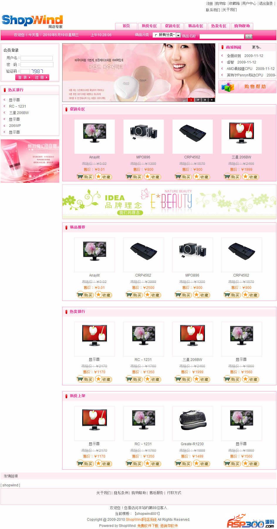 Shopwind网店系统采用的是ASP+Access+AJAX,主要功能包括商品管理,购物车,会员管理,静态页面的生成等功能;Shopwind网店系统完全免费,免费下载、免费使用、免费升级,绝无使用时间或者功能限制;Shopwind稳定、安全、性能优异,在业内具有良好的口碑。软件功能强大、全面和完善,更有多种辅助配套程序,结合使用更能大大提升您的网店管理效率,让您如虎添翼。