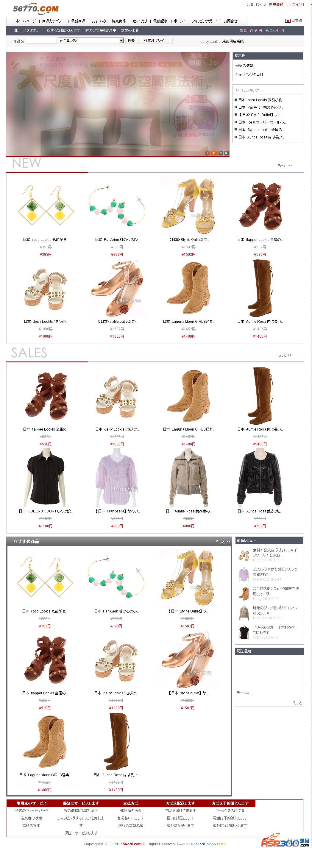 日文网店系统(56770 EShop)是一款基于Web浏览器和客户端技术的网上开店软件,它把浏览器、客户端和服务器这三种技术无缝结合为一体,界面灵活,功能强大,后台更是和服务器一样稳定、安全、可靠。
