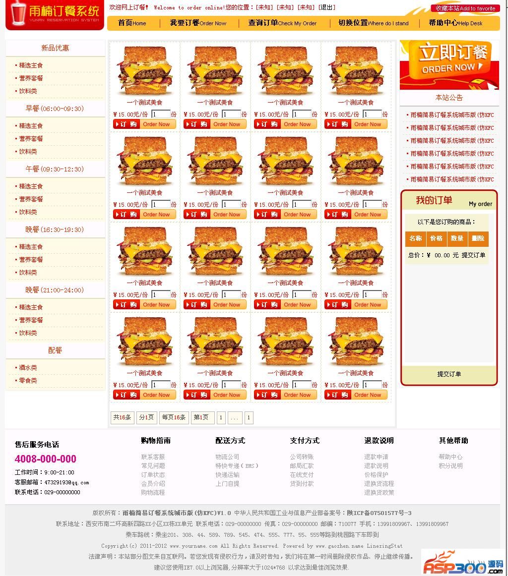 雨楠简易订餐系统区自选版(仿KFC)V2.0