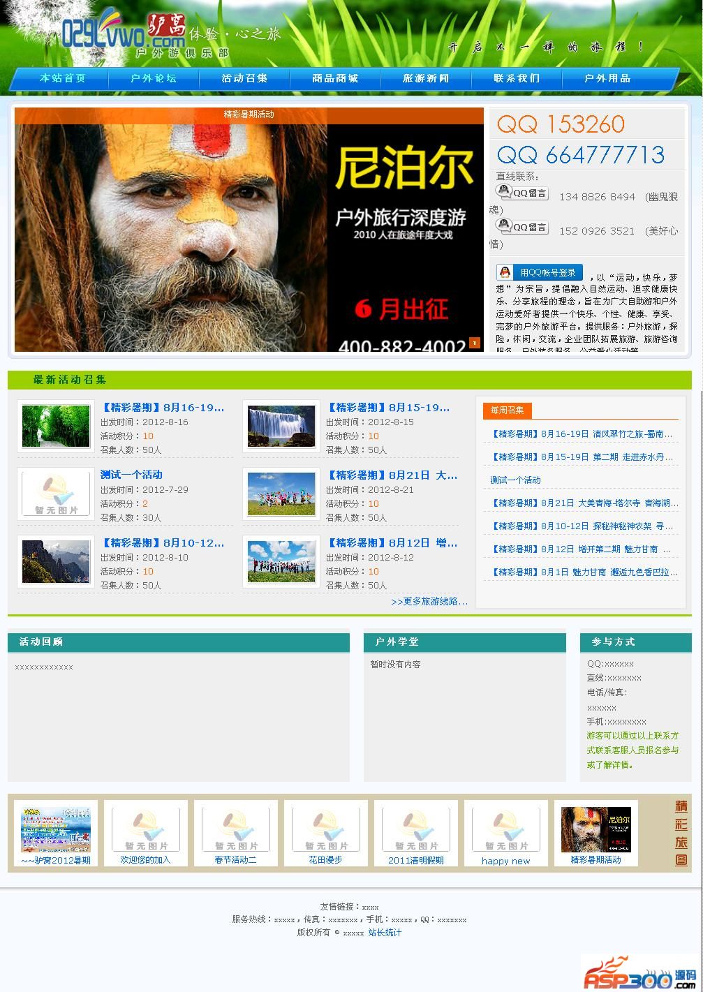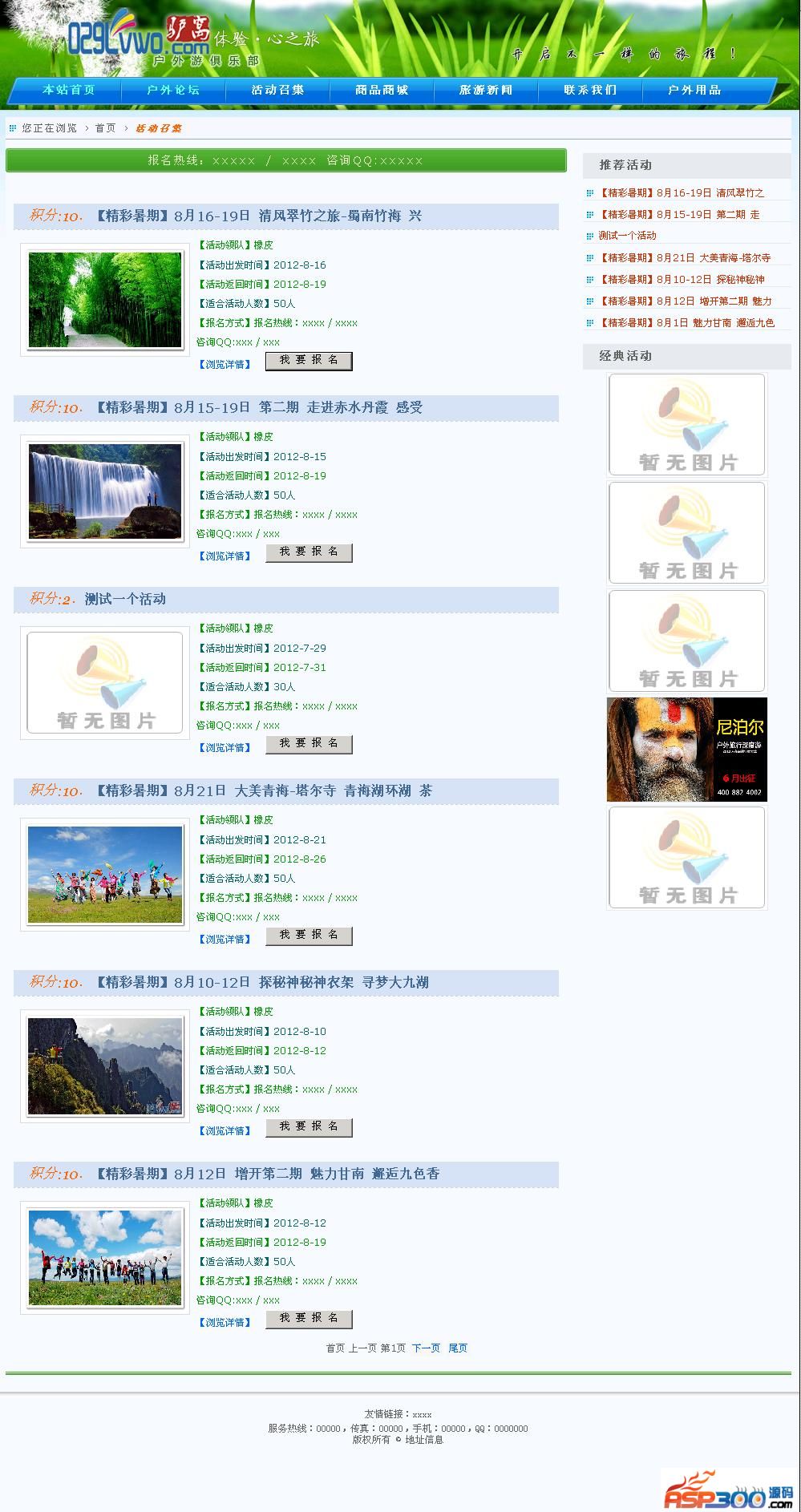 本系统是一款针对旅游|驴友的报名系统,我们有丰富的户外旅游报名开发经验,系统所有的功能都是实际应用中得来,力求每一项功能都做到实用、简洁、安全!4.2更新内容1.增加了智能日志记录,记录各类重要信息,并且分类显示在后台。2.增加了积分机制,在后台增加了积分开关,发布活动时可以选择这个活动是否允许积分支付,活动需要多少积分支付,最多只能使用积分支付多少人,前台报名时增加了积分验证机制。(商业版功能)3.增强了模板里的智能判断标签。4.修复用户在前台不能注册Bug。5.美化了注册页面。6.修复了一个QQ绑定多个账号的Bug。7.将前台页面标题,关键字,介绍移至后台控制。8.增强了活动列表显示功能,将当前进行活动和已经结束活动区分显示,并将已经结束活动自动归档。9.增加了后台管理左侧打印报表功能。10.增加了不同活动不同乘车地点功能。11.修复了添加活动时对活动简介进行自动分词并且提取关键词功能。使用说明:本系统代码模版完全分离!模版目录TempList 用户界面模版 TempList/Users首页模版TempList/Index.Html产品列表模版TempList/ProList.Html产品内容页TempList/View.Html新闻列表模版TempList/NewsList.Html新闻内容页TempList/View.Html顶部模版TempList/Top.Html更改数据库默认路径:Inc\\const.asp一定要记得更改Admin目录名称,更改之后不会影响到系统功能