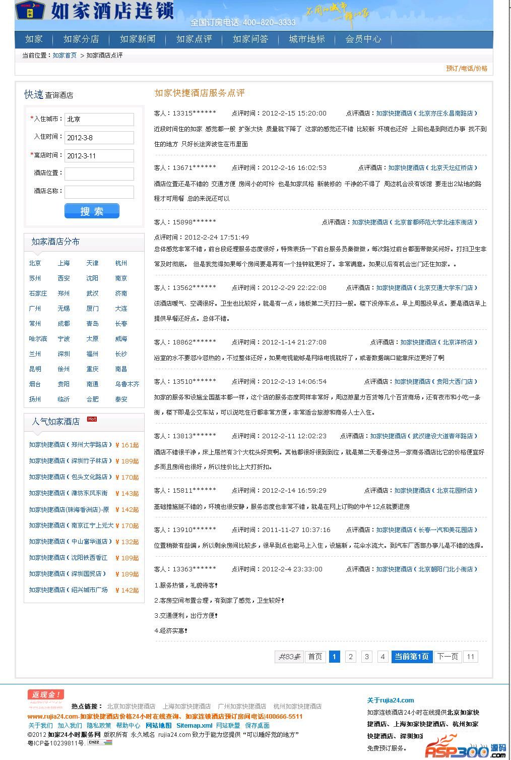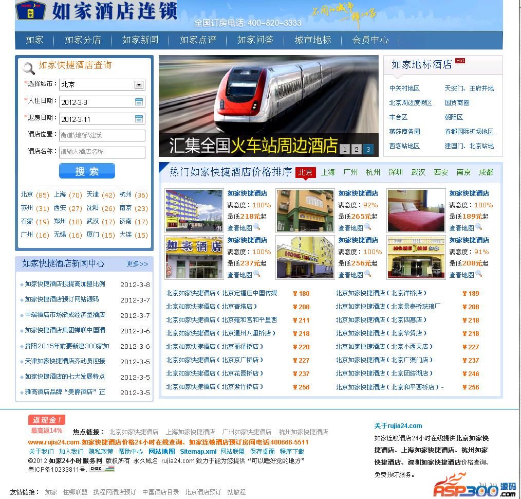 本源码是采用住哪API程序、连锁酒店单品牌版本,只有如家酒店单品牌预订功能,代码更简练,维护更容易,更适用于地方站长用于做品牌类酒店预订的站长们,占用空间不到100M,也就是说只要你有空间,支持asp和access,那么你就可以拥有一个品牌类酒店预订的网站。