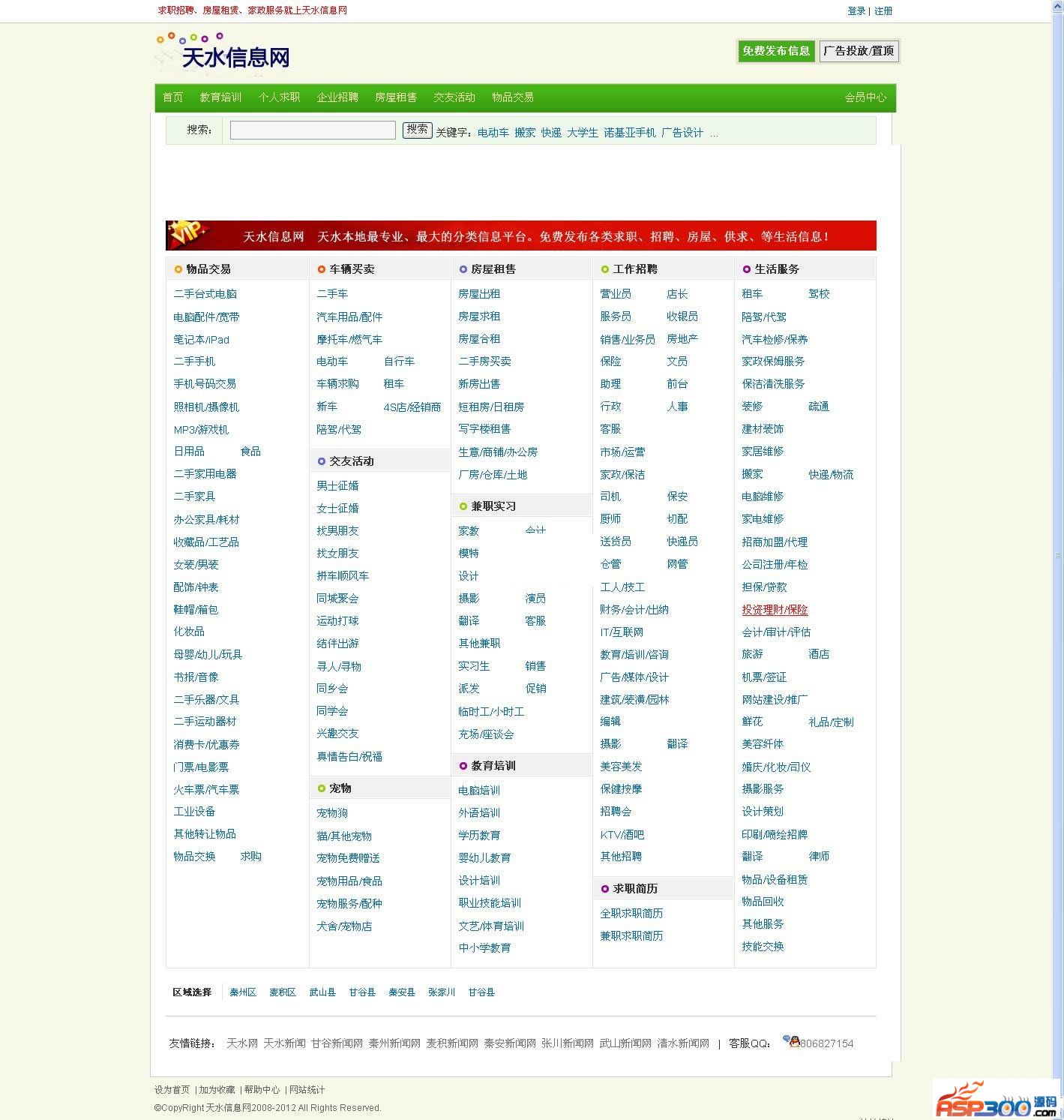 仿百姓同城地方分类信息整站核心是phpmps 是仿百姓同城模板,但是只是单城市的不是多城市请见谅,不过作为一个地方分类信息网还是比较好的。